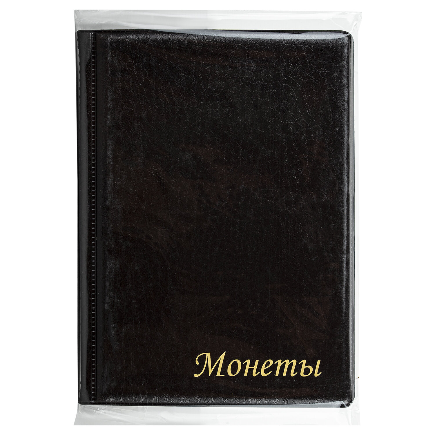 Альбом нумизмата для 120 монет, 125х175 мм, ПВХ, коричневый, STAFF, 238074
