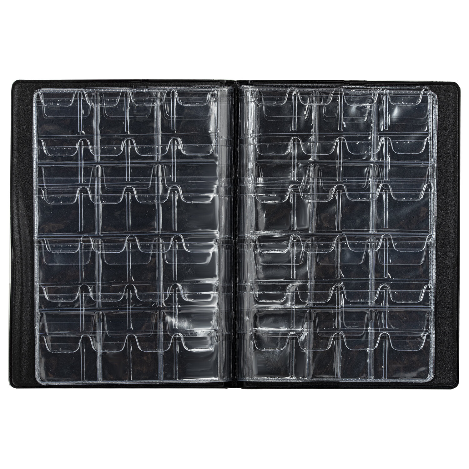 Альбом размером 125х175 мм выполнен из качественного ПВХ и представлен в темно-бордовом цвете. Укомплектован 4-мя листами по 12 ячеек (размер ячеек 35х40 мм), 2-мя листами по 24 ячейки (размер ячеек 25х25 мм). Материал листов - ПВХ. Альбом вмещает 96 монет. Альбом нумизмата для 96 монет, 125х175 мм, комбинированный, ПВХ, бордовый, STAFF, 238073