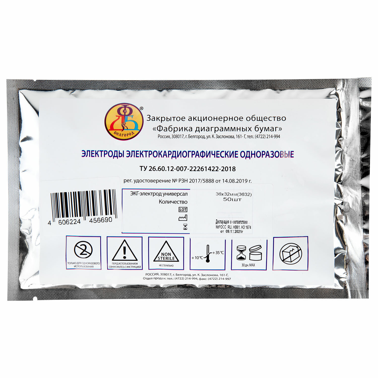 - Электроды для ЭКГ одноразовые, 36х32 мм, КОМПЛЕКТ 50 шт., универсальные на полимерной основе, 3632