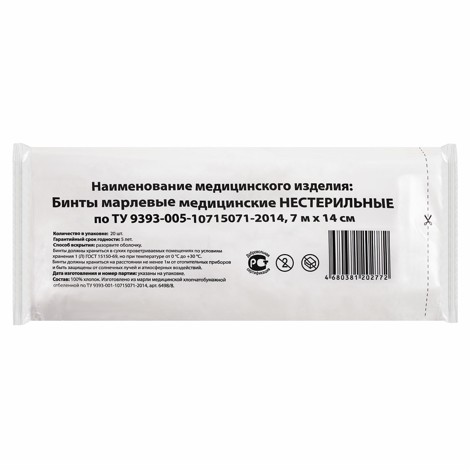 - Бинт марлевый нестерильный 14 см х 7 м, КОМПЛЕКТ 20 шт., плотность 30 (±2) г/м2, NEW LIFE, ТТ-00253771
