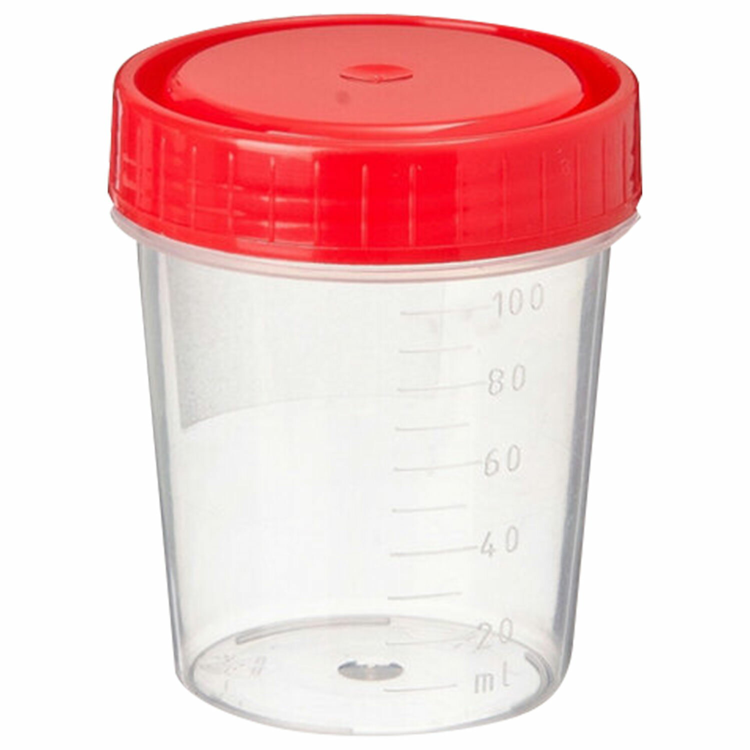 Баночка для мочи снабжена герметично завинчивающейся крышкой красного цвета, обеспечивающей надежную защиту от протекания, расплескивания и ингаляционного контакта, что обеспечивает полную герметичность при транспортировке биологического материала.