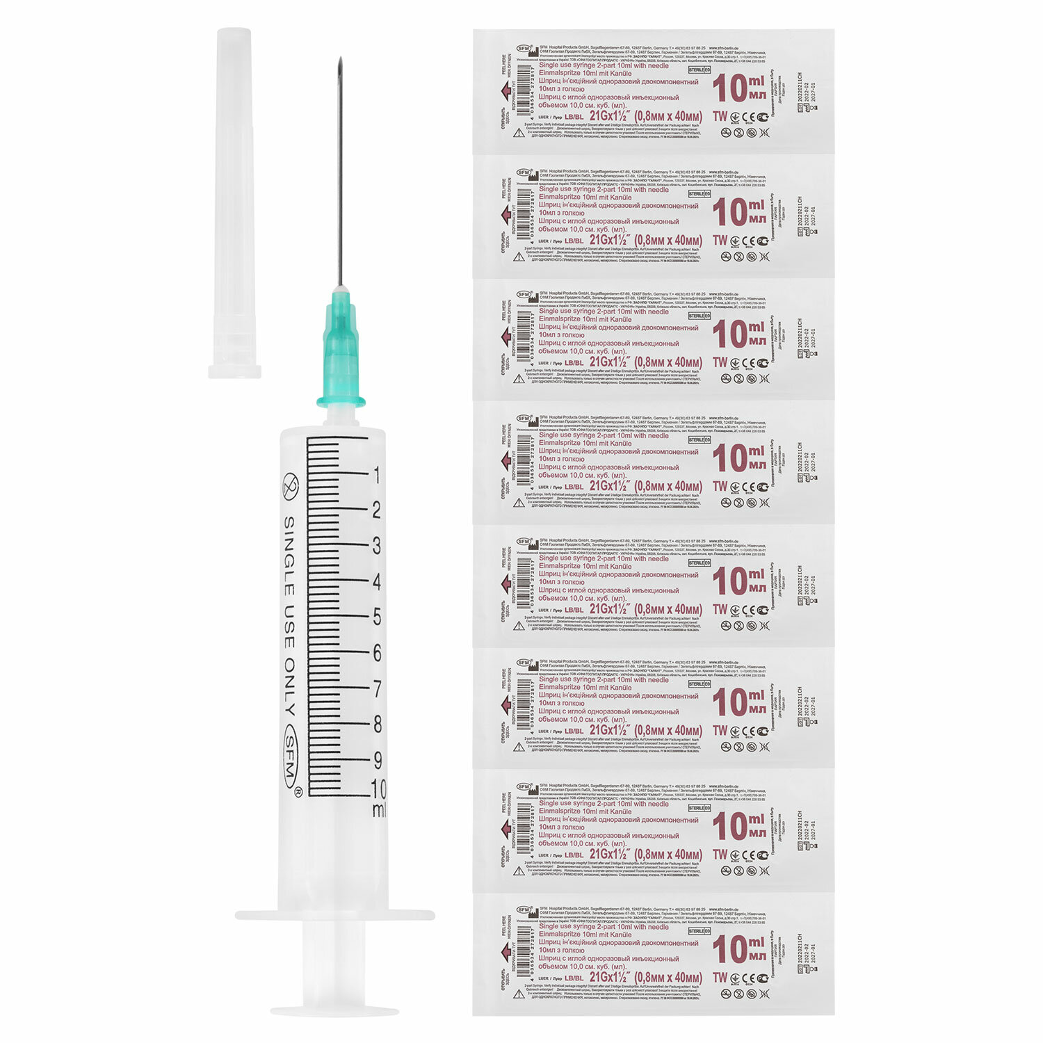 Шприц 2-х компонентный SFM, 10 мл, КОМПЛЕКТ 100 шт, в коробке, игла 0,8х40 - 21G, 534272