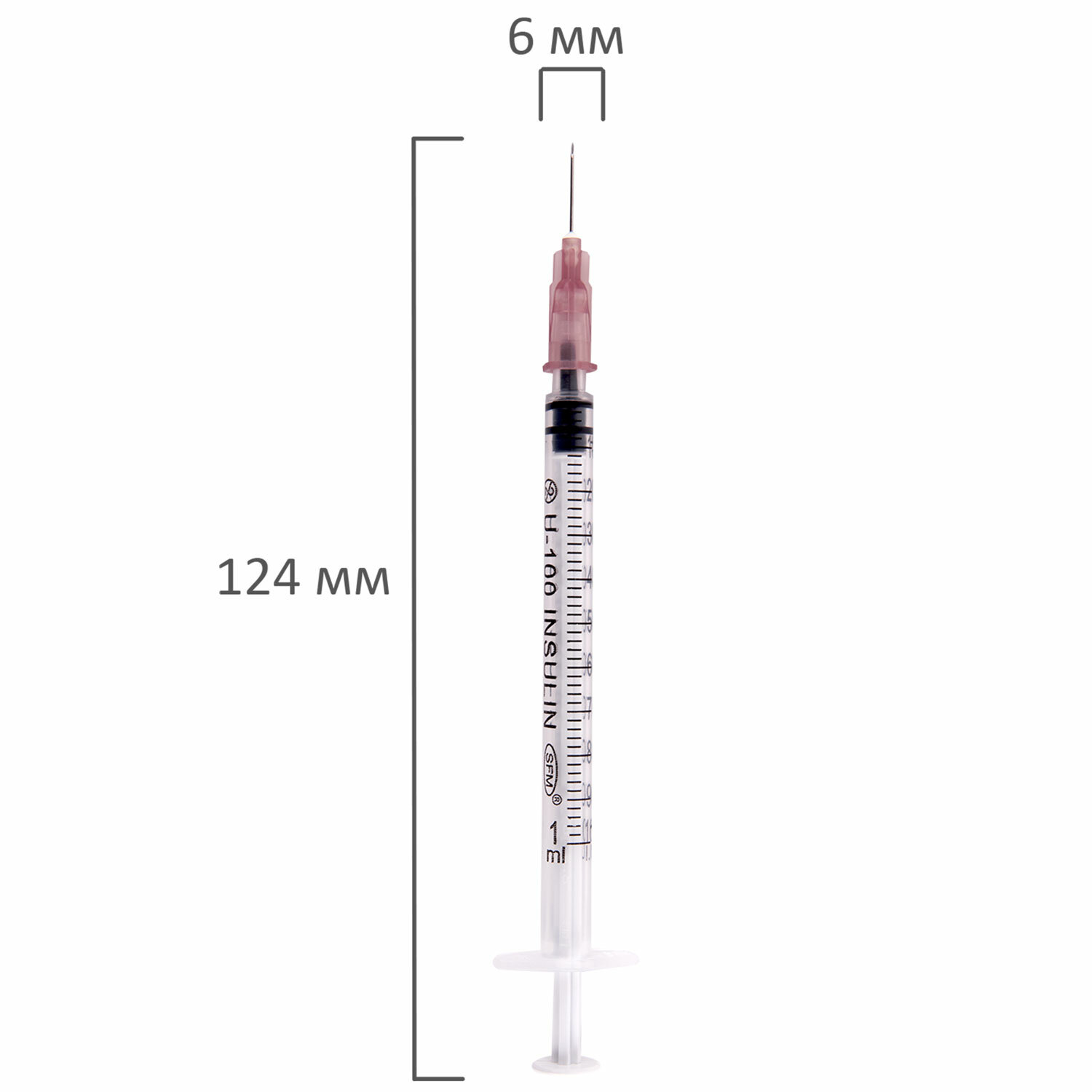 - Шприц инсулиновый SFM, 1 мл, КОМПЛЕКТ 100 шт., в коробке, U-100 игла 0,45х12 мм - 26G, 534208