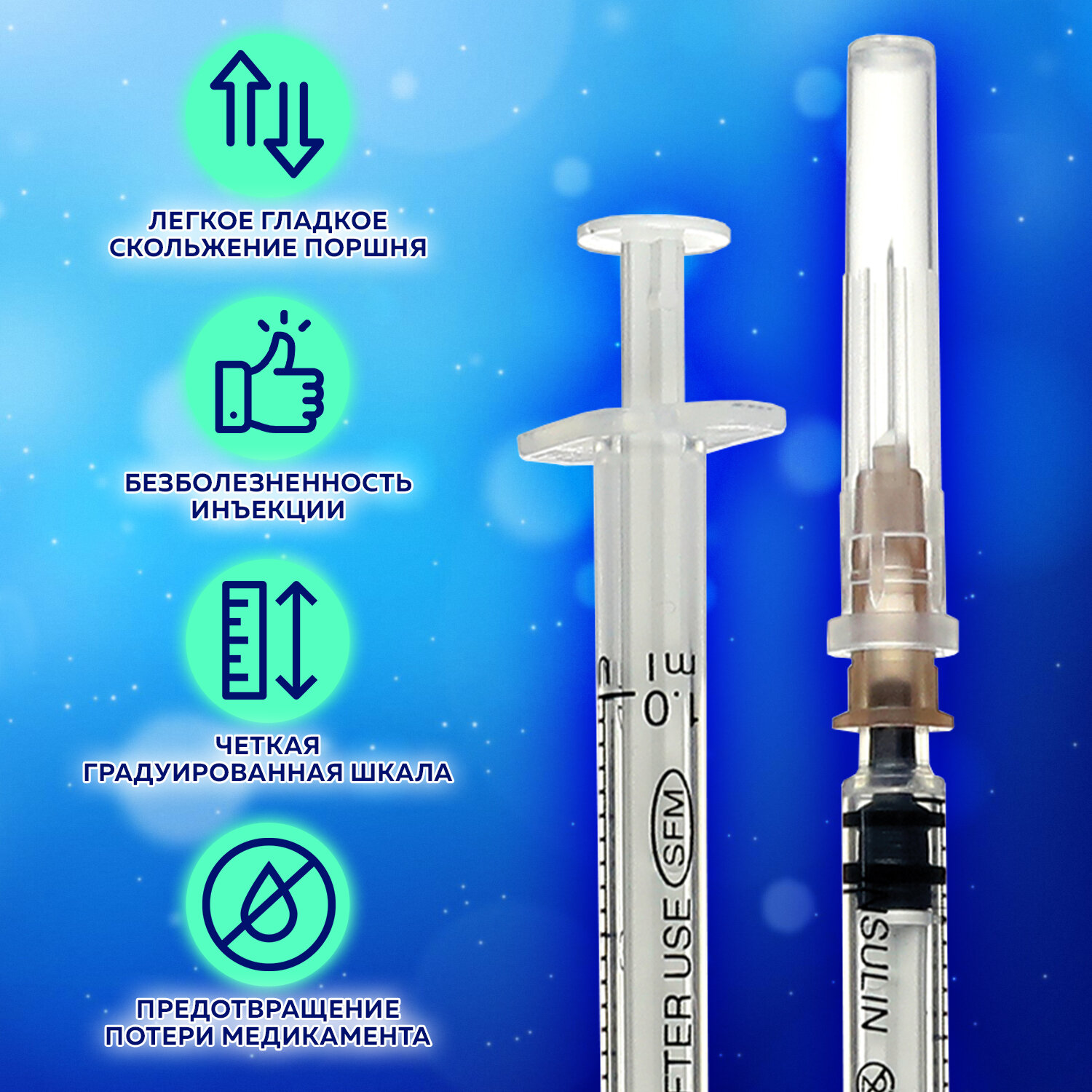 - Шприц инсулиновый SFM, 1 мл, КОМПЛЕКТ 100 шт. в коробке, U-40, игла 0,45х12 - 26G, 534200