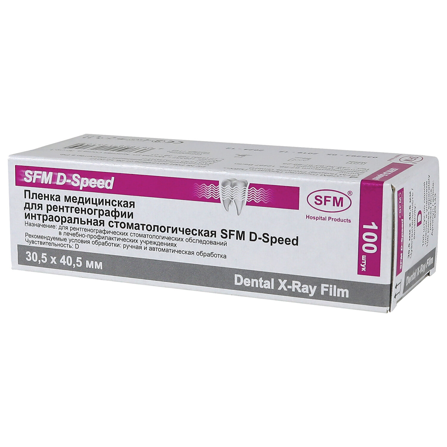 - Рентгеновская пленка стоматологическая SFM D-SPEED, КОМПЛЕКТ 100 листов, 30,5х40,5 мм, 629143