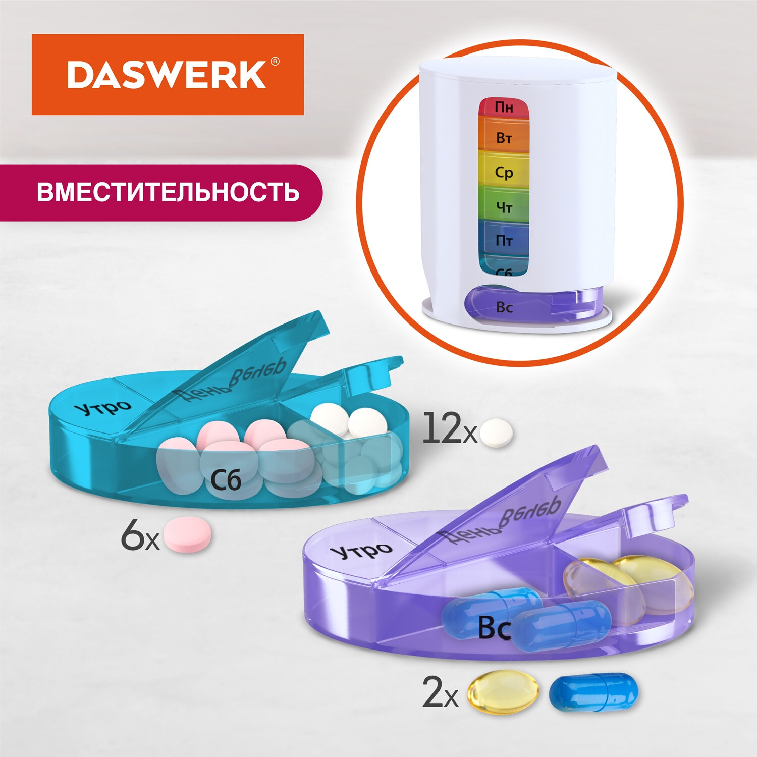 - ТАБЛЕТНИЦА / Контейнер-органайзер для лекарств и витаминов "7 дней/4 приема WHITE", DASWERK, 630847