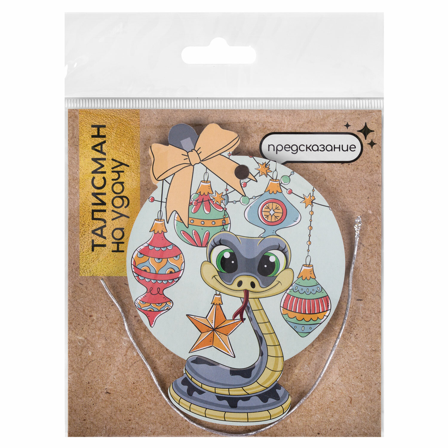 - Новогоднее подвесное украшение 11 см, "Змейка на удачу" со скретч-слоем и предсказаниями, 92088