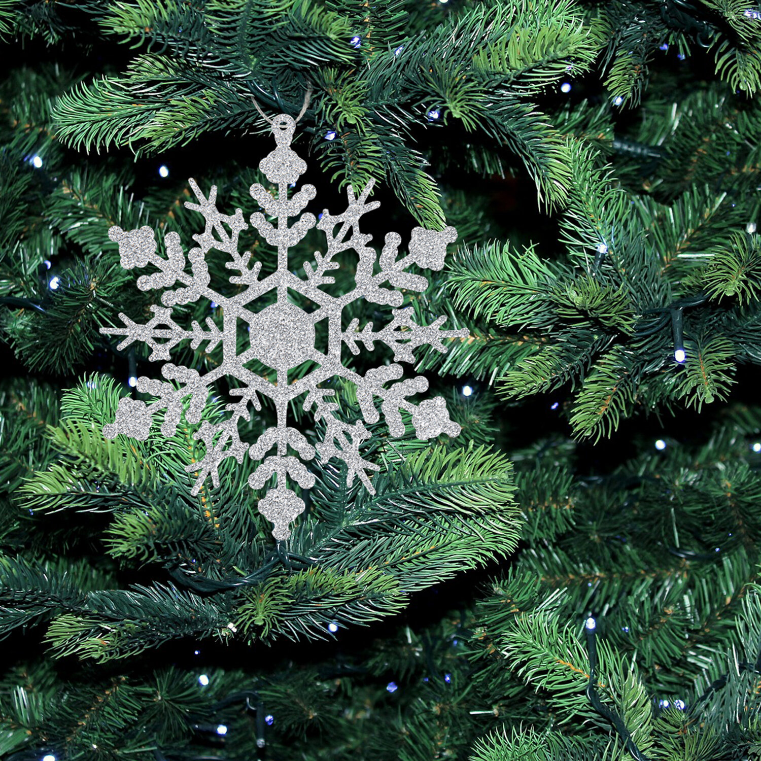 - Украшение ёлочное "Снежинки" 6 шт., 12 см, пластик, серебристые с глиттером, ЗОЛОТАЯ СКАЗКА, 591131