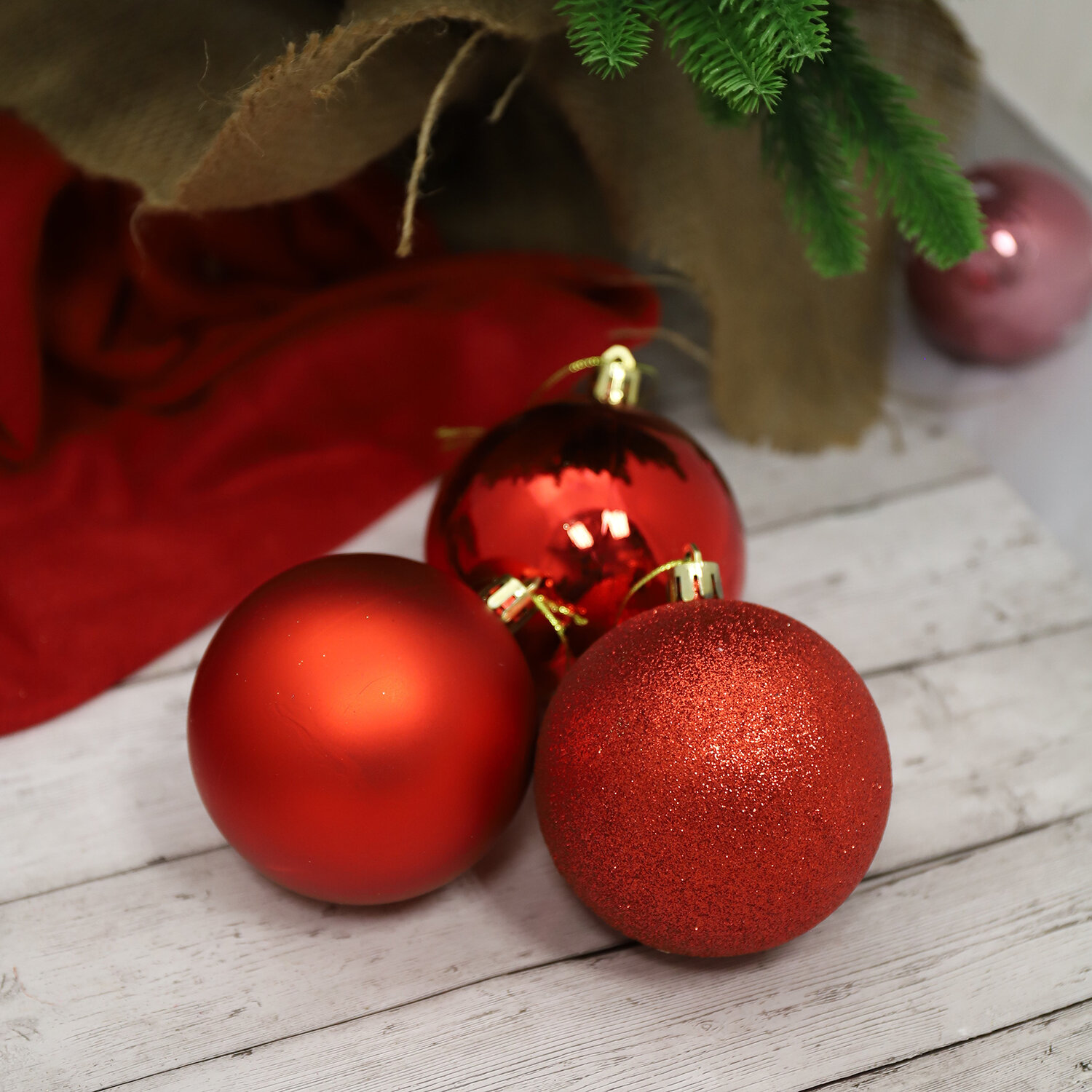 се шары в наборе – одного цвета. Шары ёлочные 6 шт., 8 см, "Trio", пластик, КРАСНЫЕ (глянец, матовый, глиттер), ЗОЛОТАЯ СКАЗКА, 590873