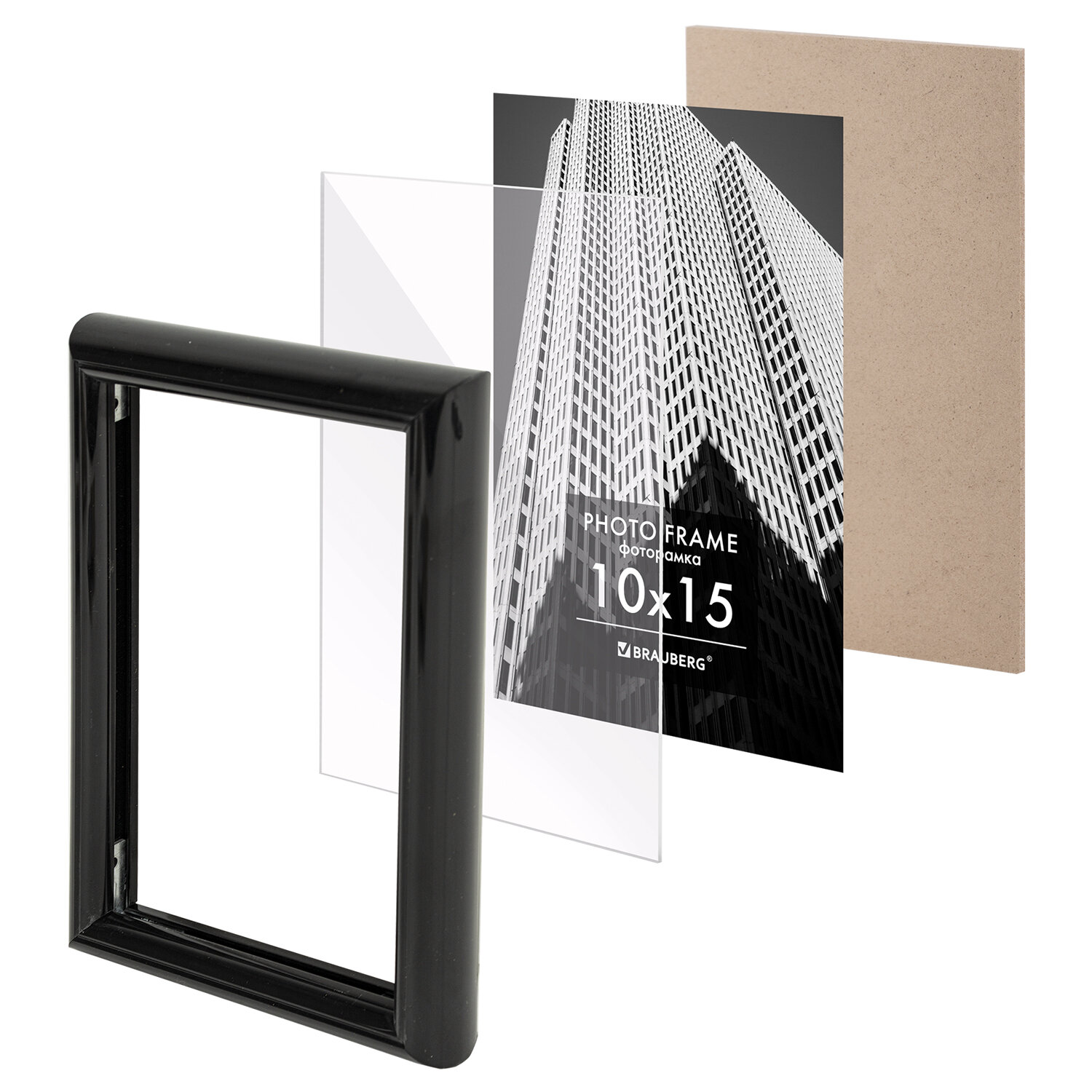 Задняя панель выполнена из прочного МДФ. Рамка поставляется в термоусадочной плёнке. Для дополнительной защиты от сколов и потертостей она упакована в пупырчатую пленку и индивидуальный трехслойный гофрокороб. Рамка 10х15 см небьющаяся, багет 14 мм, пластик, BRAUBERG "Original", черная, 391227