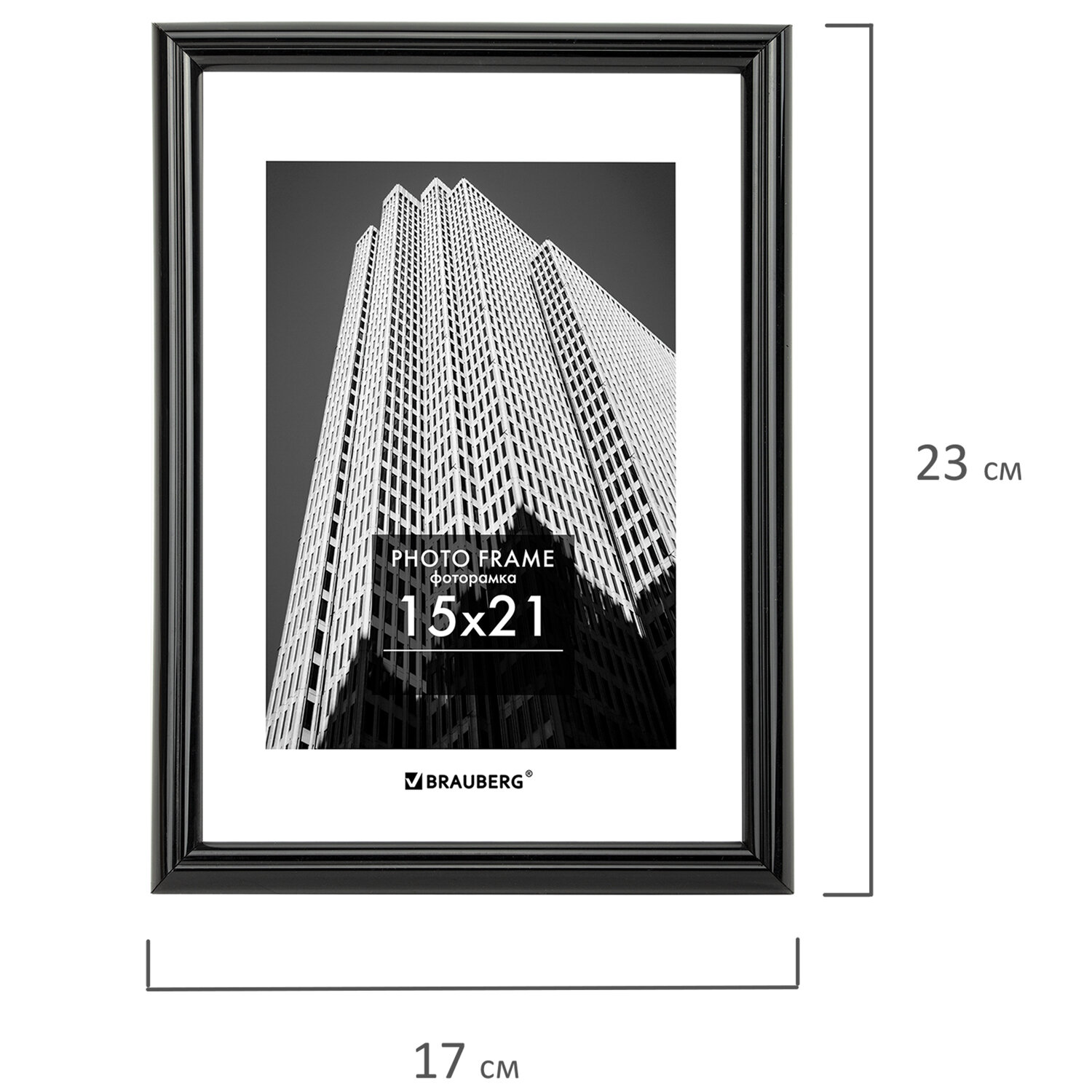 - Рамка 15х21 см небьющаяся, багет 14 мм, пластик, BRAUBERG "Original", черная, 391228