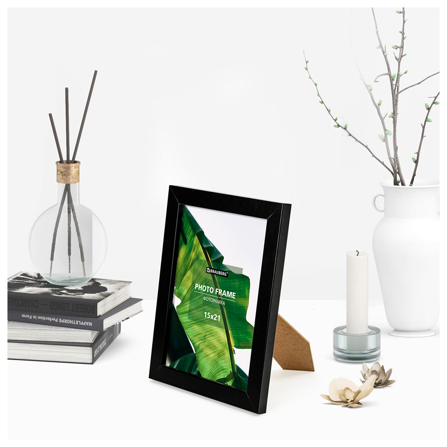 Задняя панель выполнена из прочного МДФ. Рамка поставляется в термоусадочной плёнке. Для дополнительной защиты от сколов и потертостей она упакована в пупырчатую пленку и индивидуальный трехслойный гофрокороб. Рамка 15х21 см небьющаяся, багет 20 мм, МДФ, BRAUBERG "William", черная, 391267