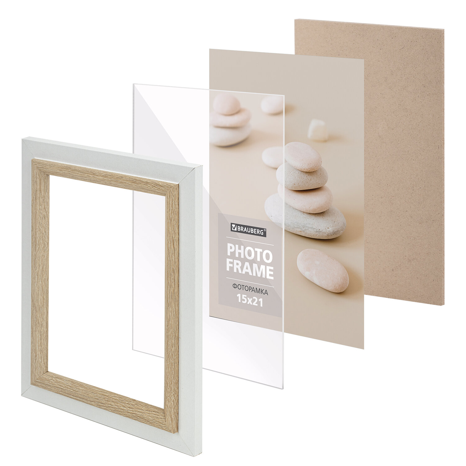 Задняя панель выполнена из прочного МДФ. Рамка поставляется в термоусадочной плёнке. Для дополнительной защиты от сколов и потертостей она упакована в пупырчатую пленку и индивидуальный трехслойный гофрокороб. Рамка 15х21 см небьющаяся, багет 35 мм, МДФ, BRAUBERG "Esquire", белая/капучино, 391255