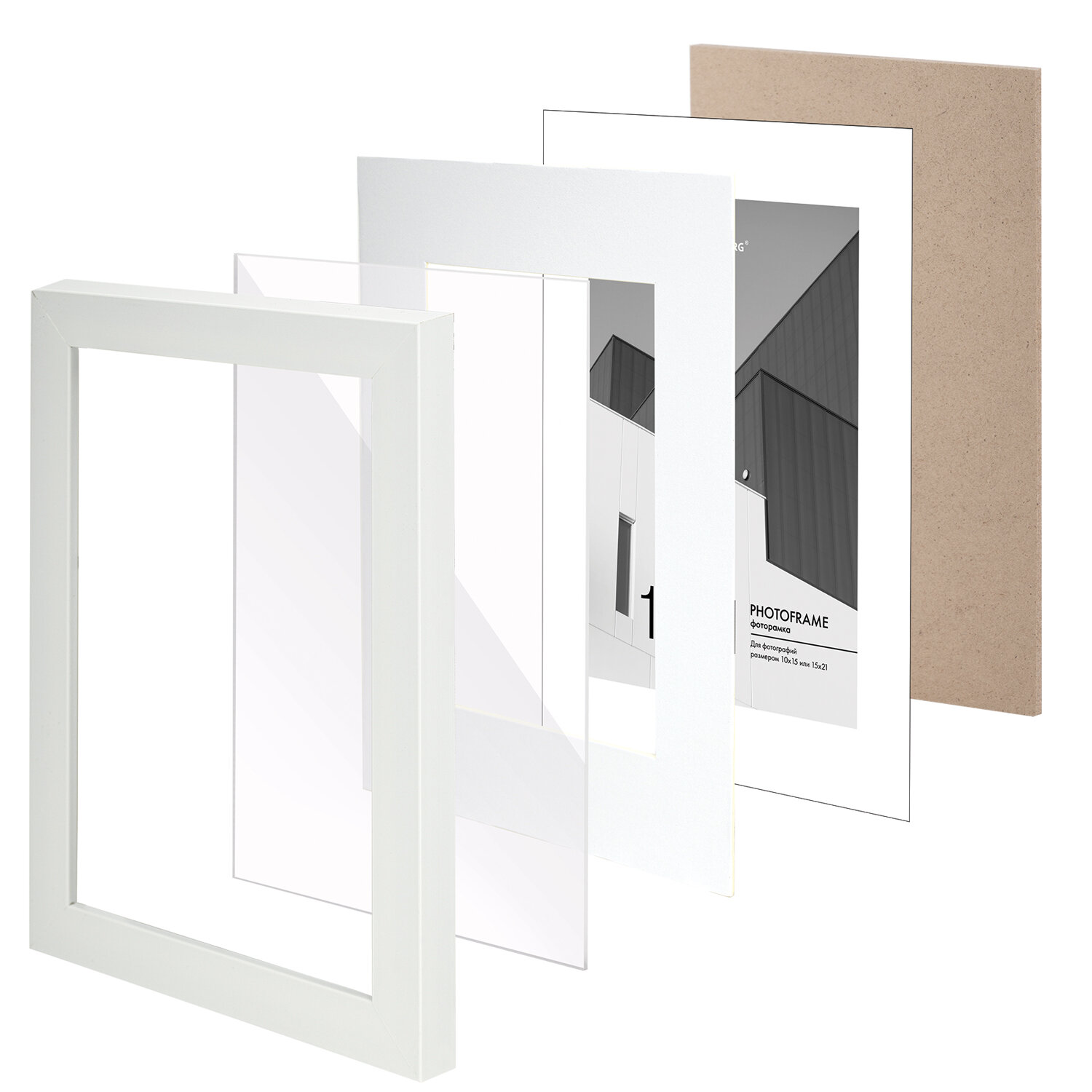 - Рамка 15х21 см с паспарту 10х15 см небьющаяся, багет 20 мм пластик, BRAUBERG "New Age", белая, 391274
