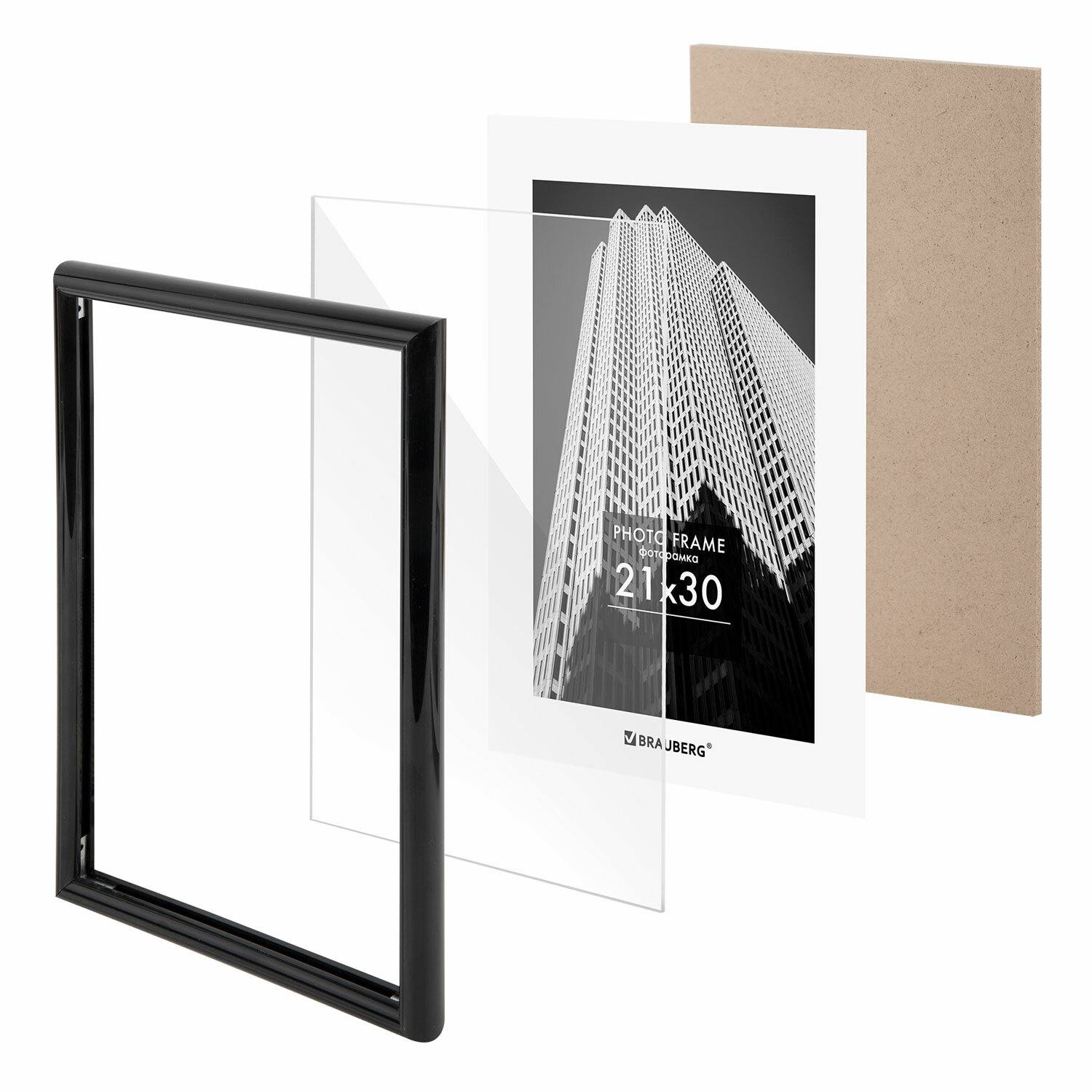 - Рамка 21х30 см небьющаяся, багет 14 мм, пластик, BRAUBERG "Original", черная, 391229