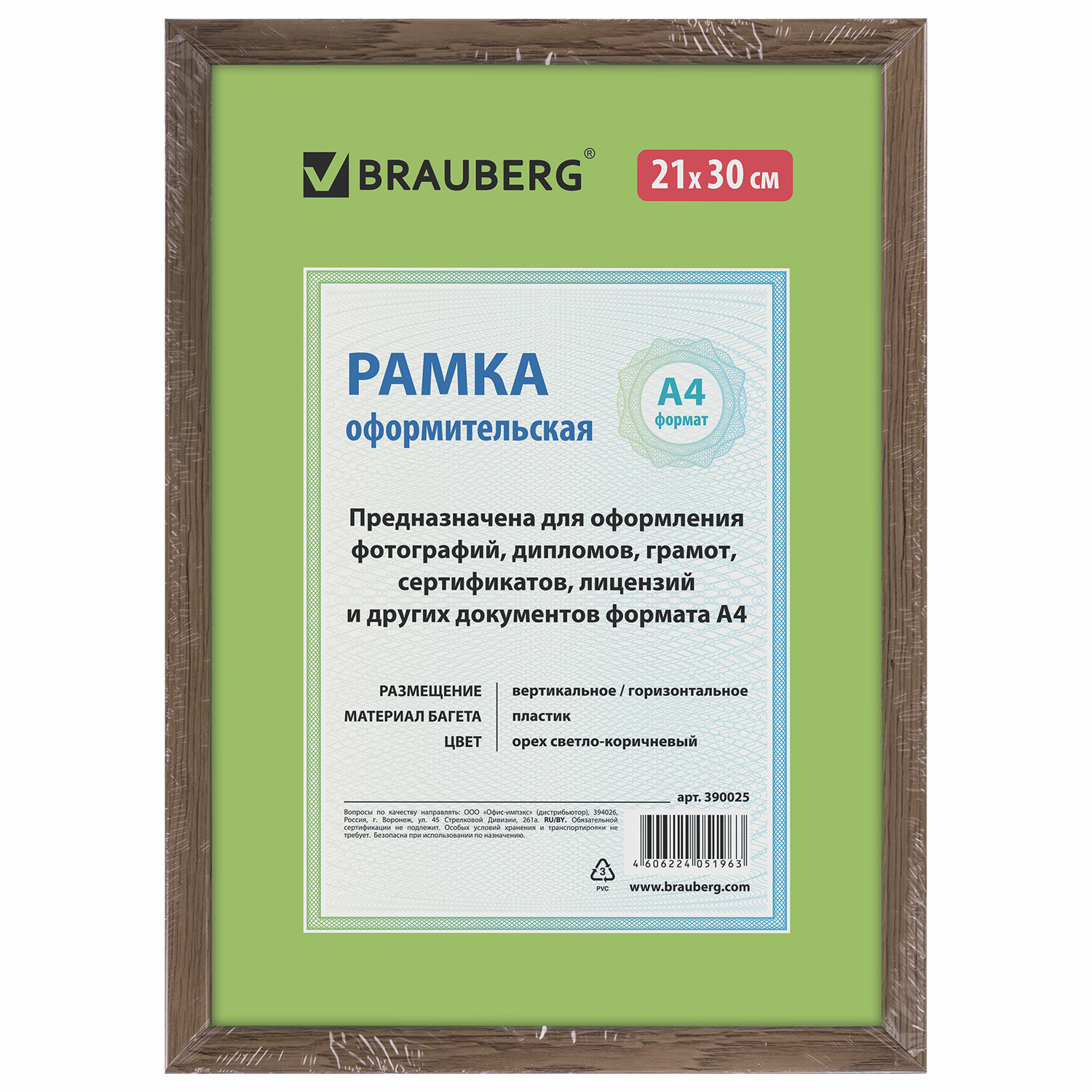 - Рамка 21х30 см, пластик, багет 15 мм, BRAUBERG "HIT", орех, стекло, 390025