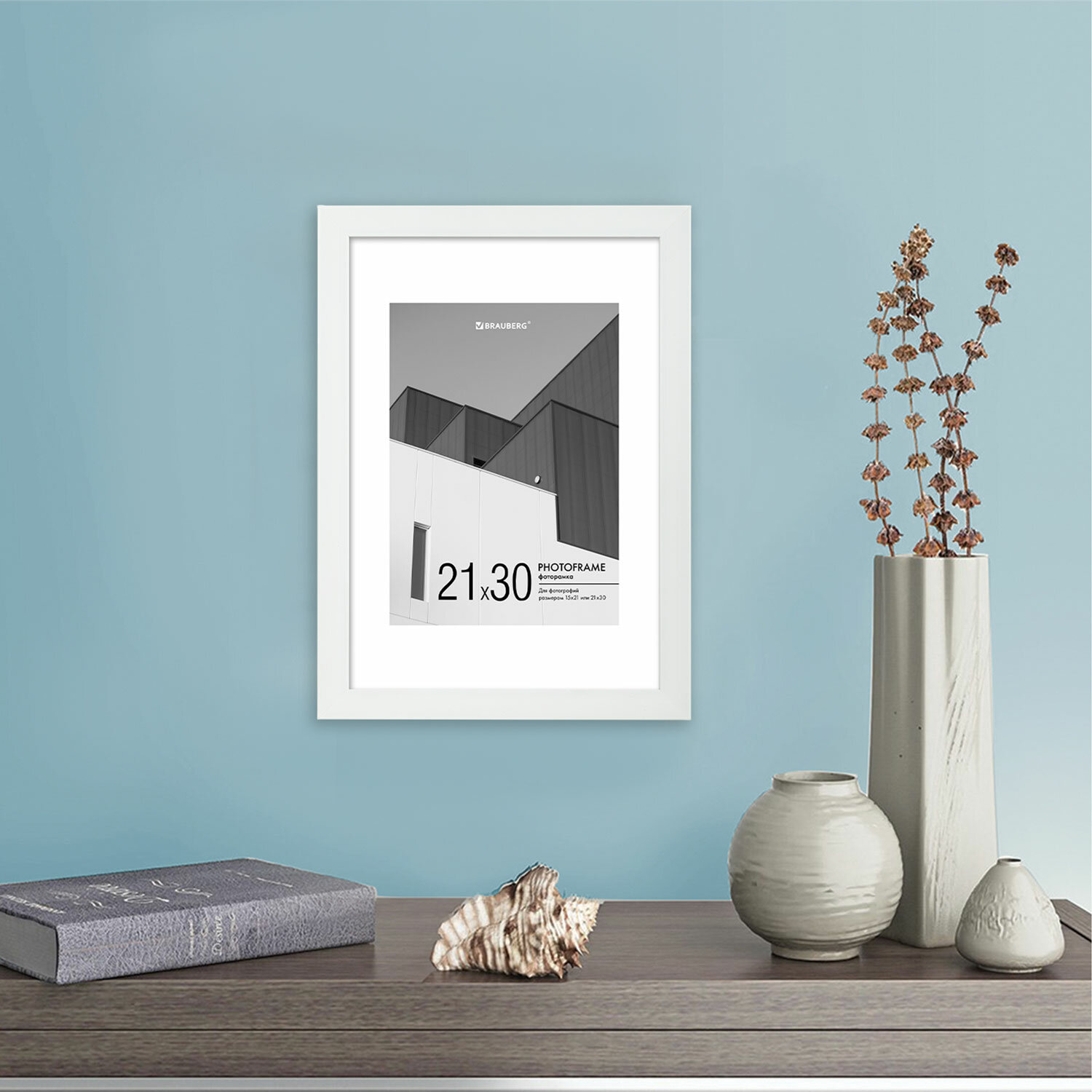 - Рамка 21х30 см с паспарту 15х21 см небьющаяся, багет 20 мм пластик, BRAUBERG "New Age", белая, 391276