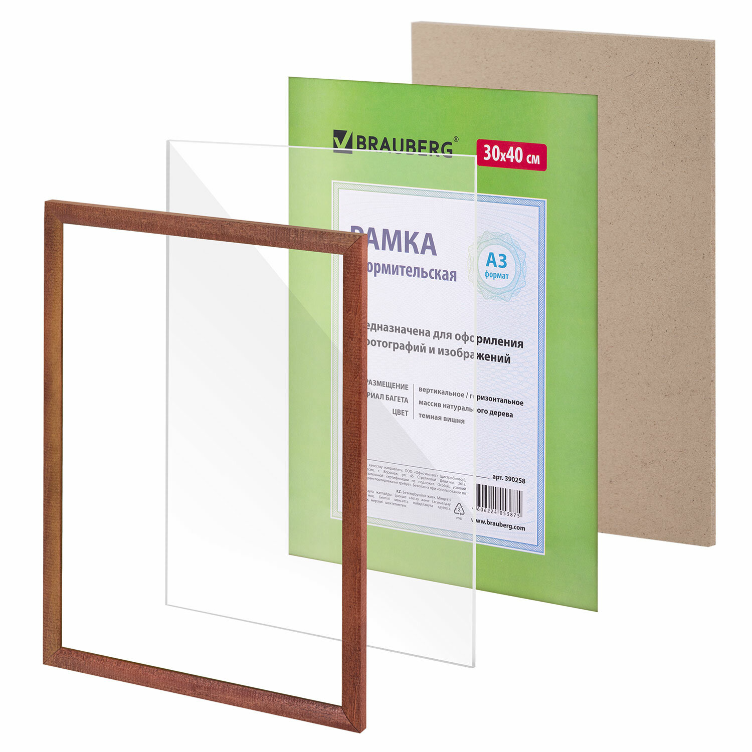 - Рамка 30х40 см, дерево, багет 18 мм, BRAUBERG "HIT", темная вишня, стекло, 390258