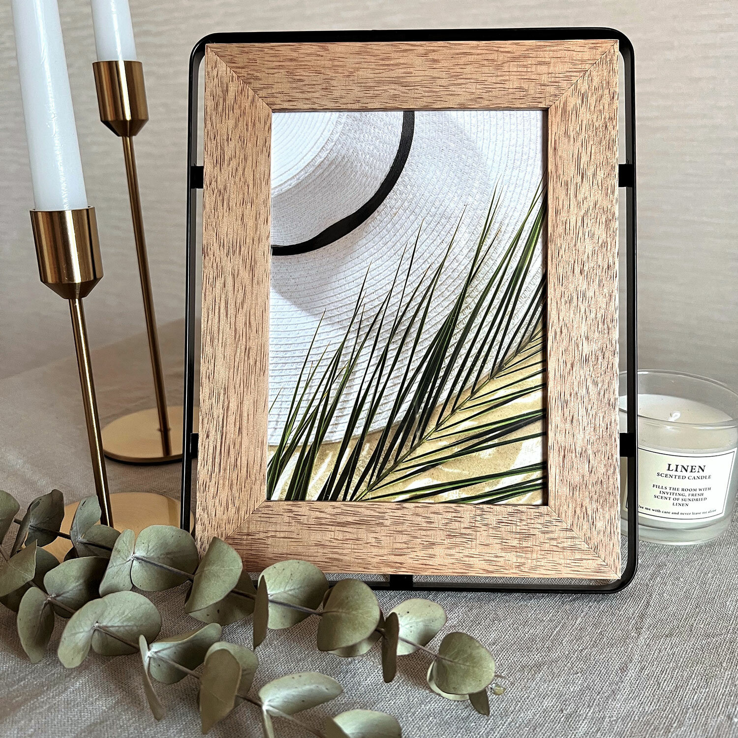 Рамка, выполненная из массива мангового дерева – благородного и эксклюзивного материала, также оформлена декоративной обводкой из металла. За счет этого достигается идеальное сочетании классики и современного стиля.