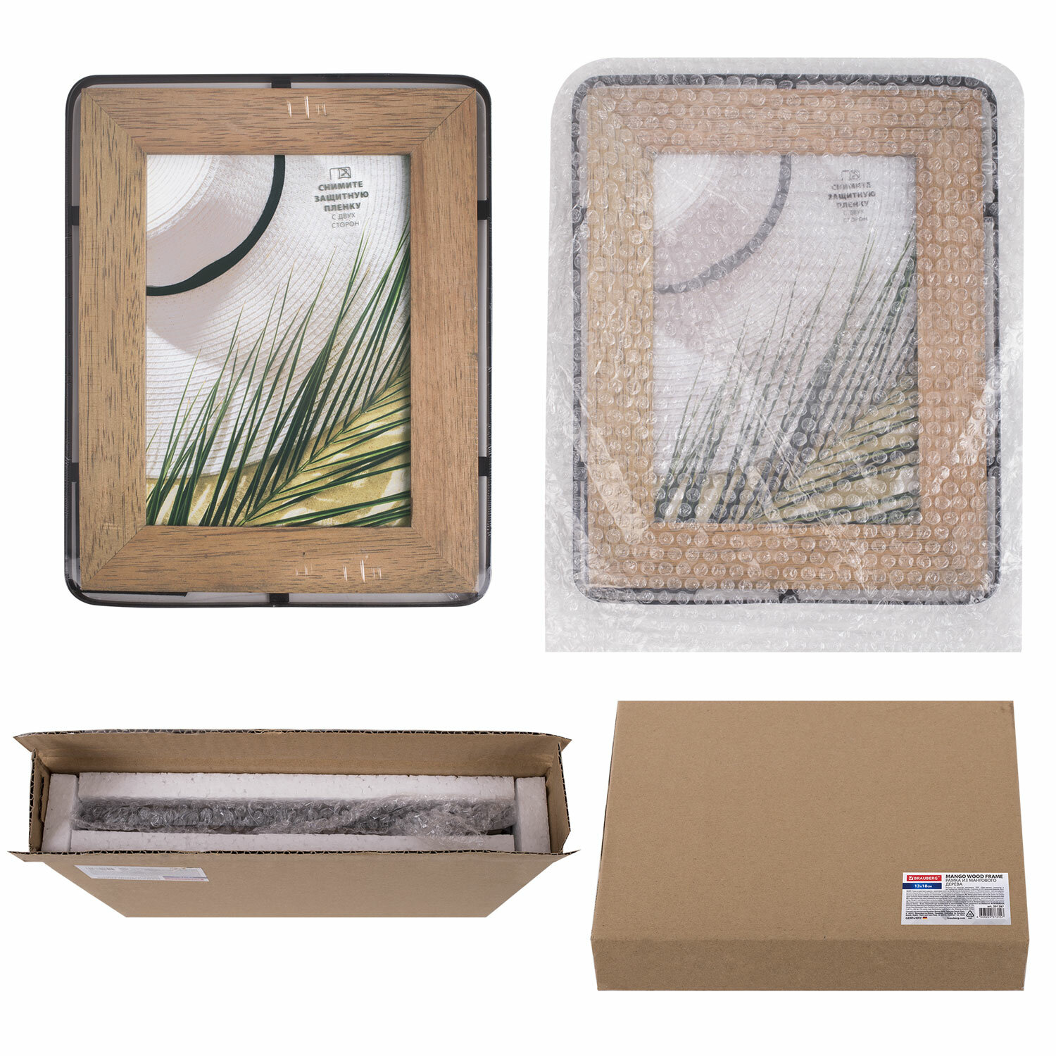 Задняя панель выполнена из прочного МДФ. Рамка поставляется в термоусадочной плёнке. Для дополнительной защиты от сколов и потертостей она упакована в трехслойный гофрокороб с пенопластом внутри.