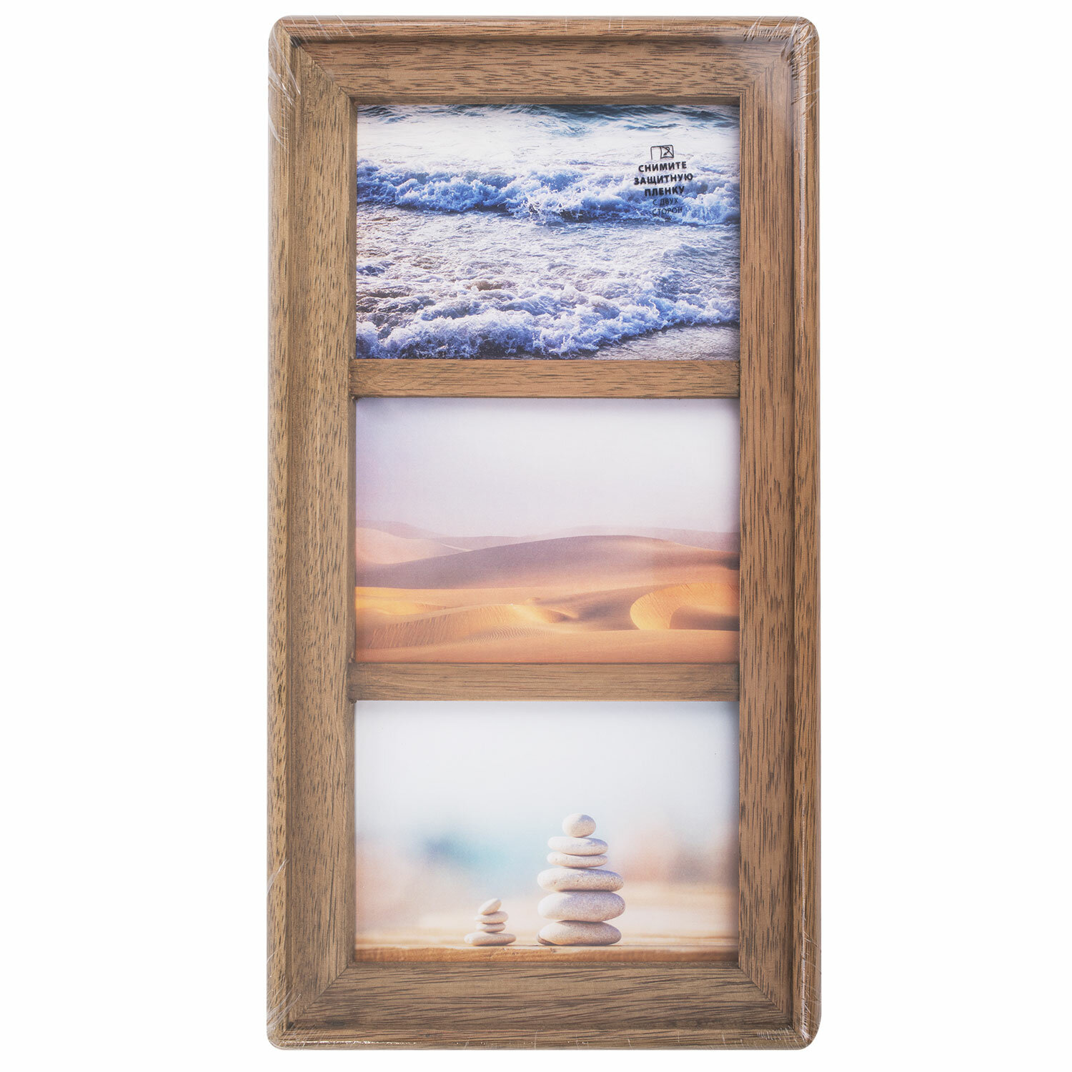 Рамка предназначена для 3-х фотографий размером 10х15 см. Ширина багета - 30 мм, высота - 20 мм. Имеется возможность вертикального и горизонтального подвеса. Аккуратный вид достигается благодаря стеклянной вставке.