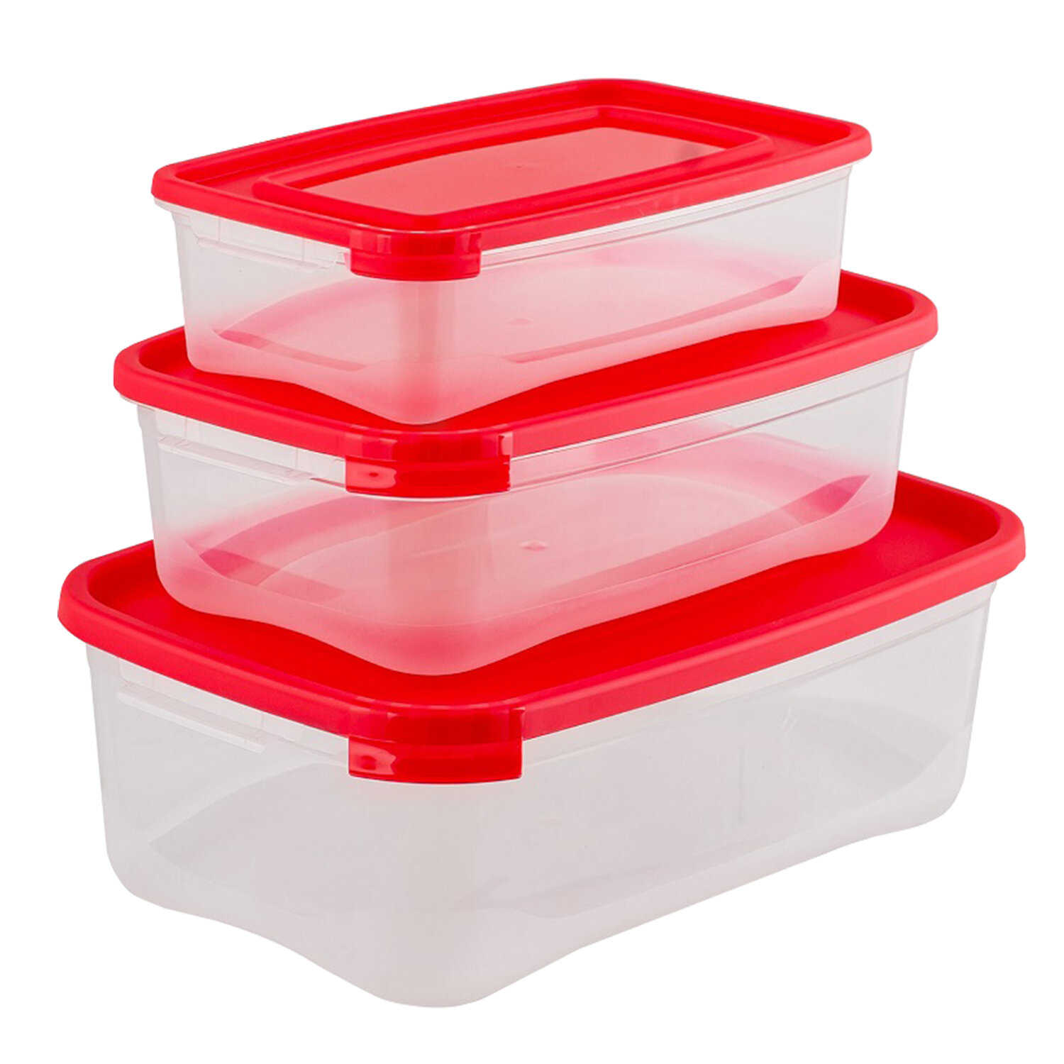 - Контейнер пищевой КОМПЛЕКТ 3 шт.: 0,7 л, 1,2 л, 2,2 л, ланч-бокс, КАСКАД, прозрачный, 59003, 435900365