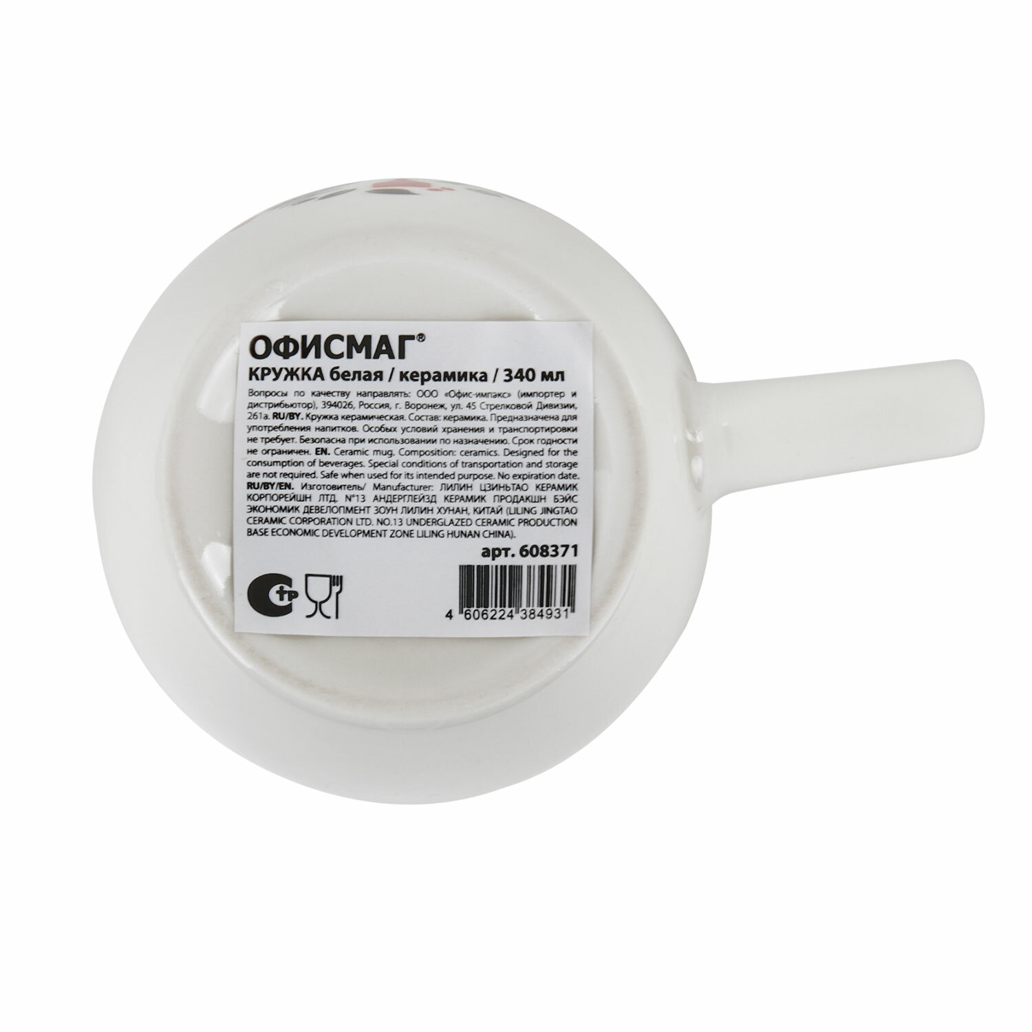 - Кружка ОФИСМАГ, 340 мл, керамика, белая, 608371
