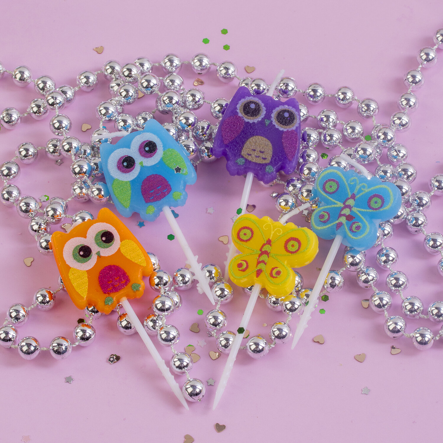 - Свечи фигурные для торта на шпажках "Совы и бабочки", 5 шт., 2,5х3/2,5х2,5 см, ЗОЛОТАЯ СКАЗКА, 591465