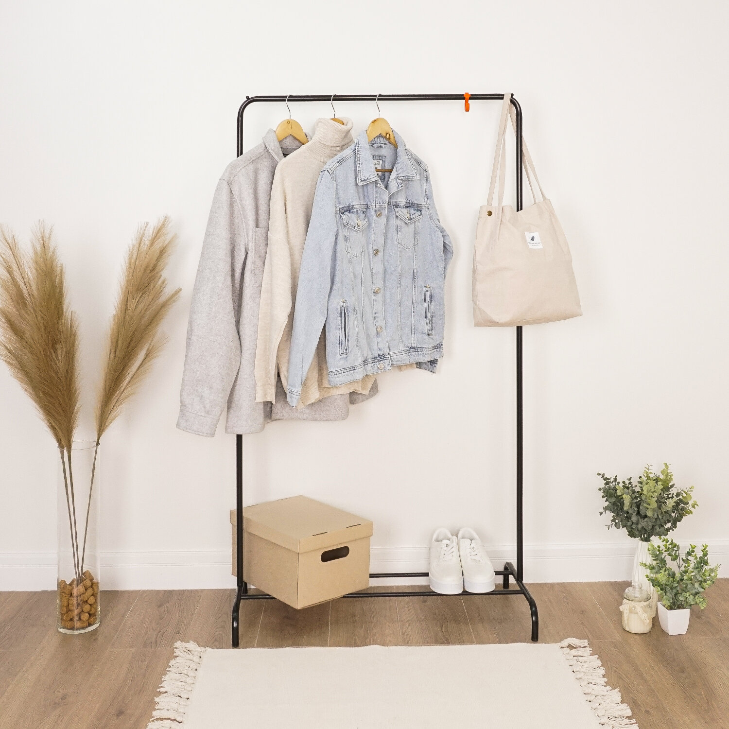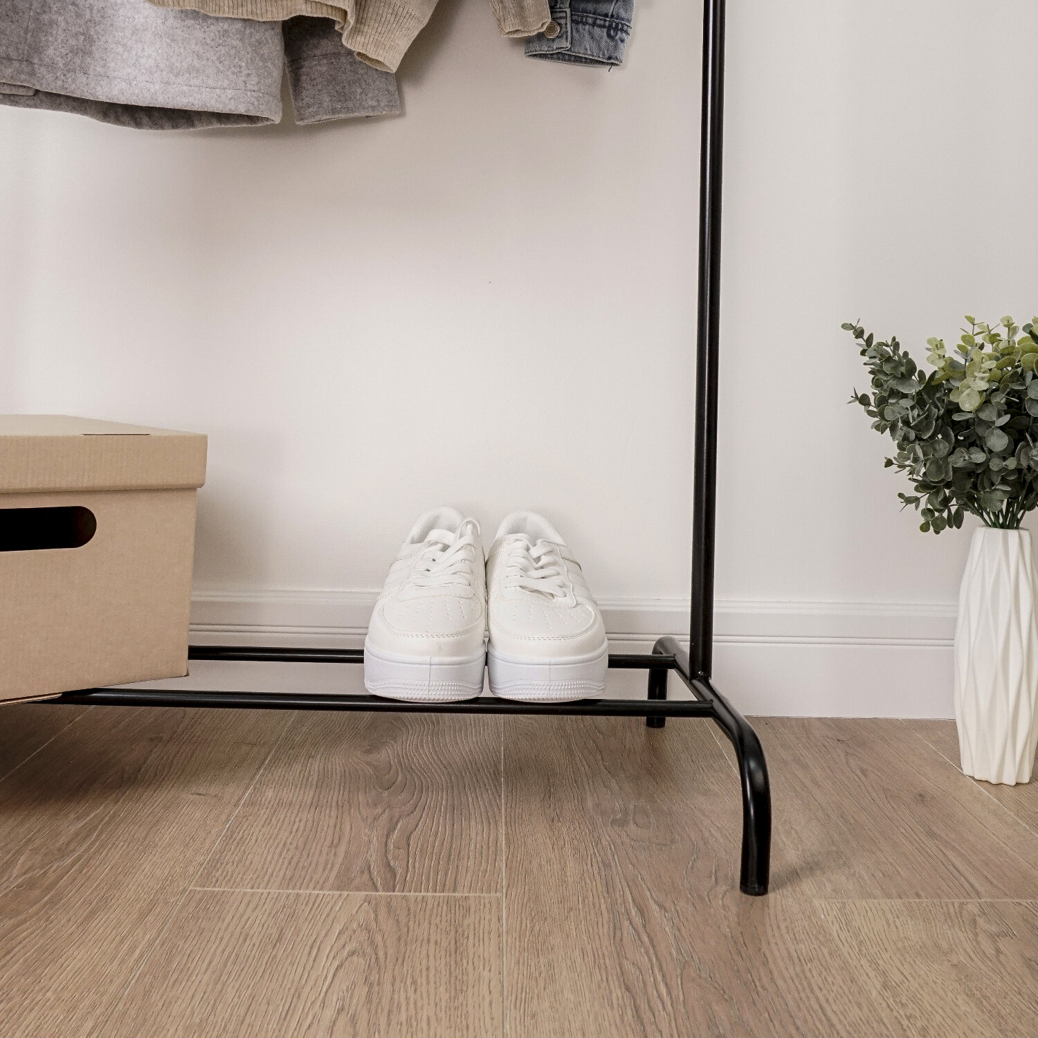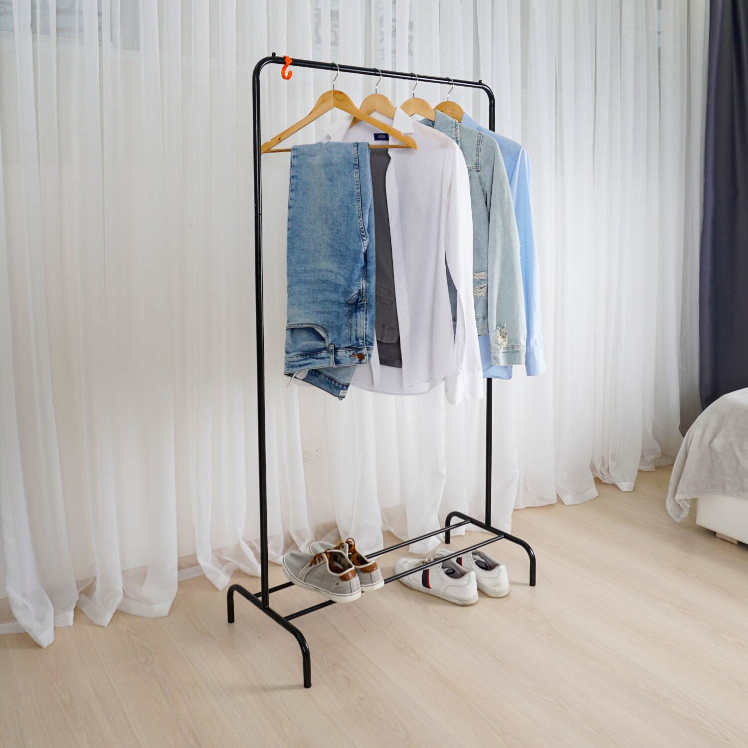 Железная перекладина способна разместить до 15 плечиков.