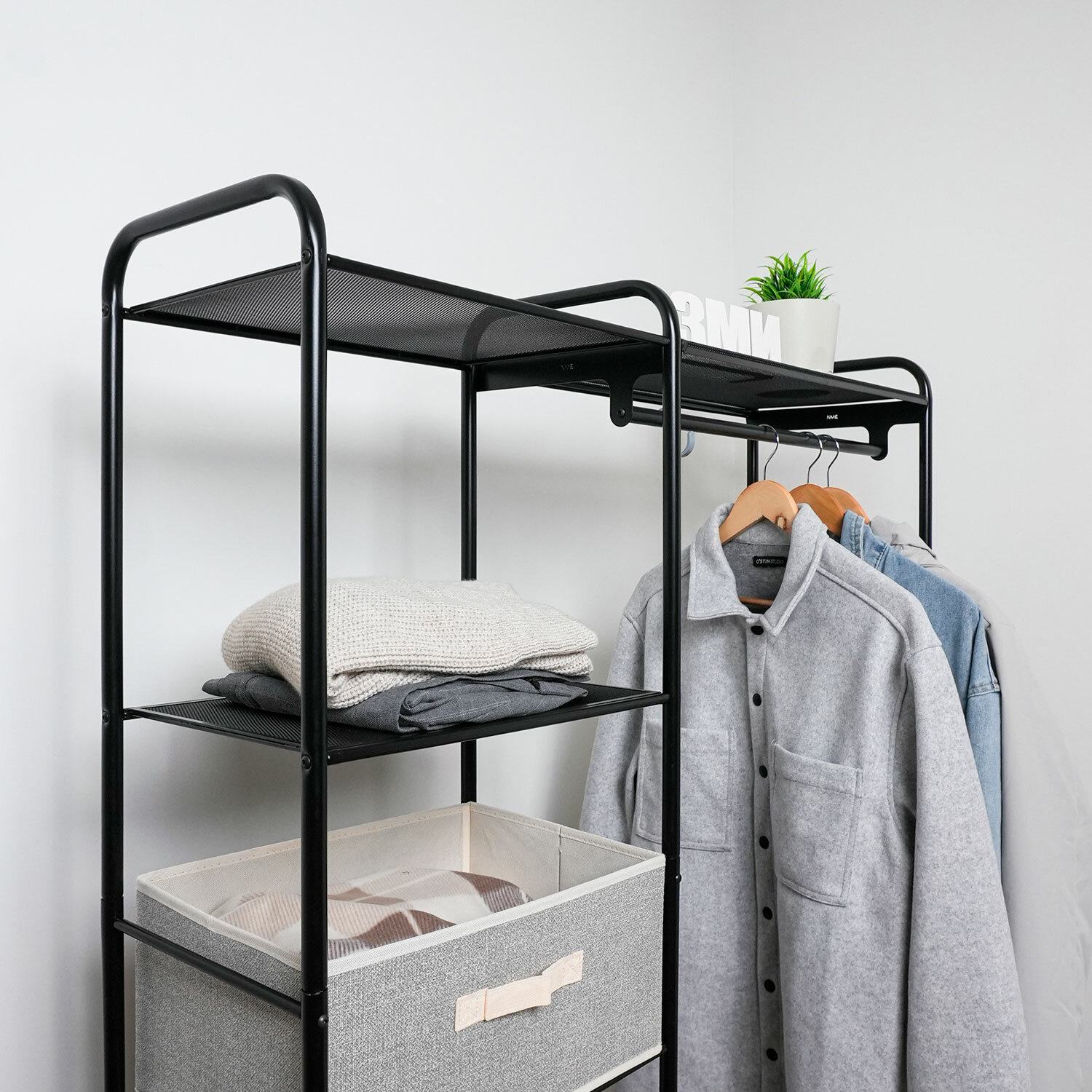 Железная перекладина способна разместить от 10 до 15 плечиков, распределенная нагрузка — до 20 кг.