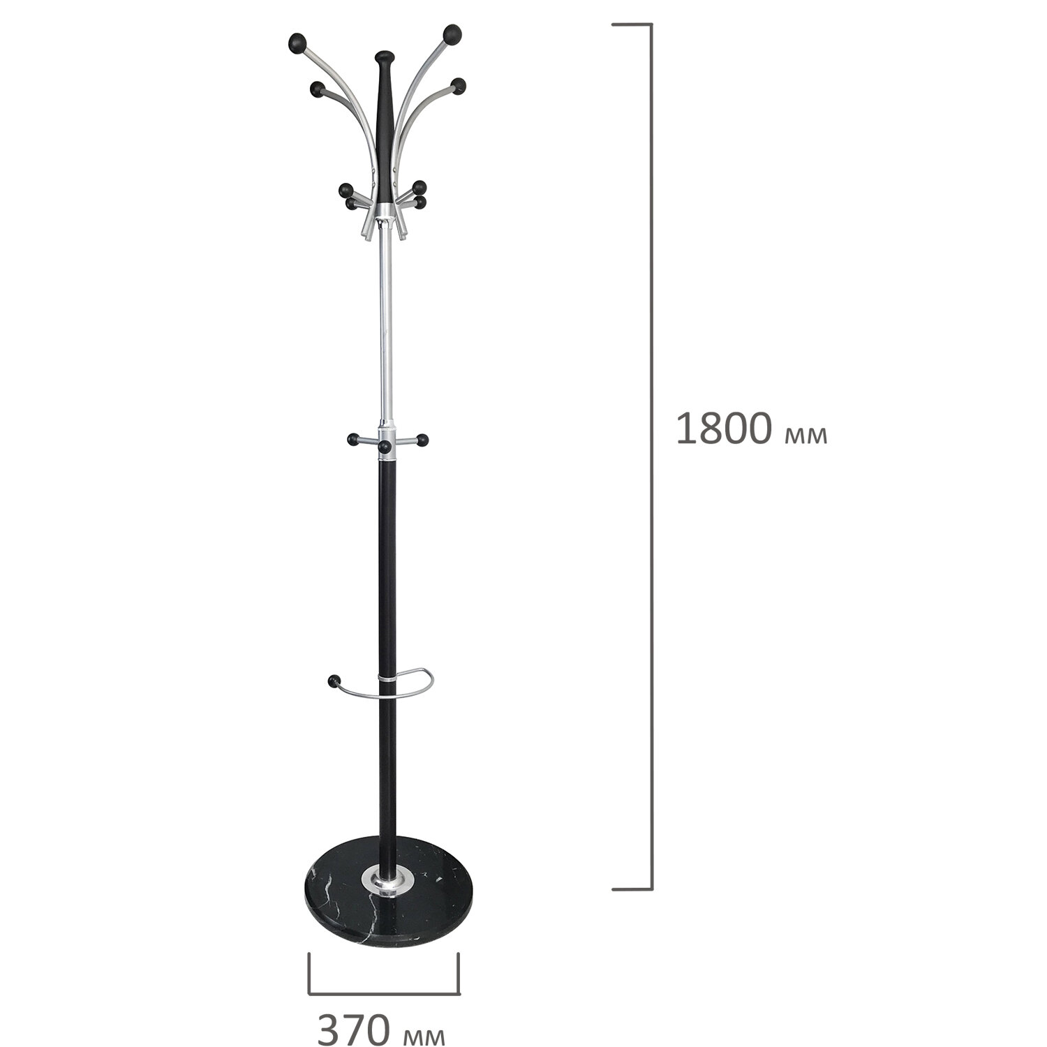 Комплект поставляется в разобранном виде. Размер - 1800х370х370 мм. Вешалка-стойка BRABIX "CR-848" на мраморном диске, металл, 4+3 крючка, цвет коричневый, 606435