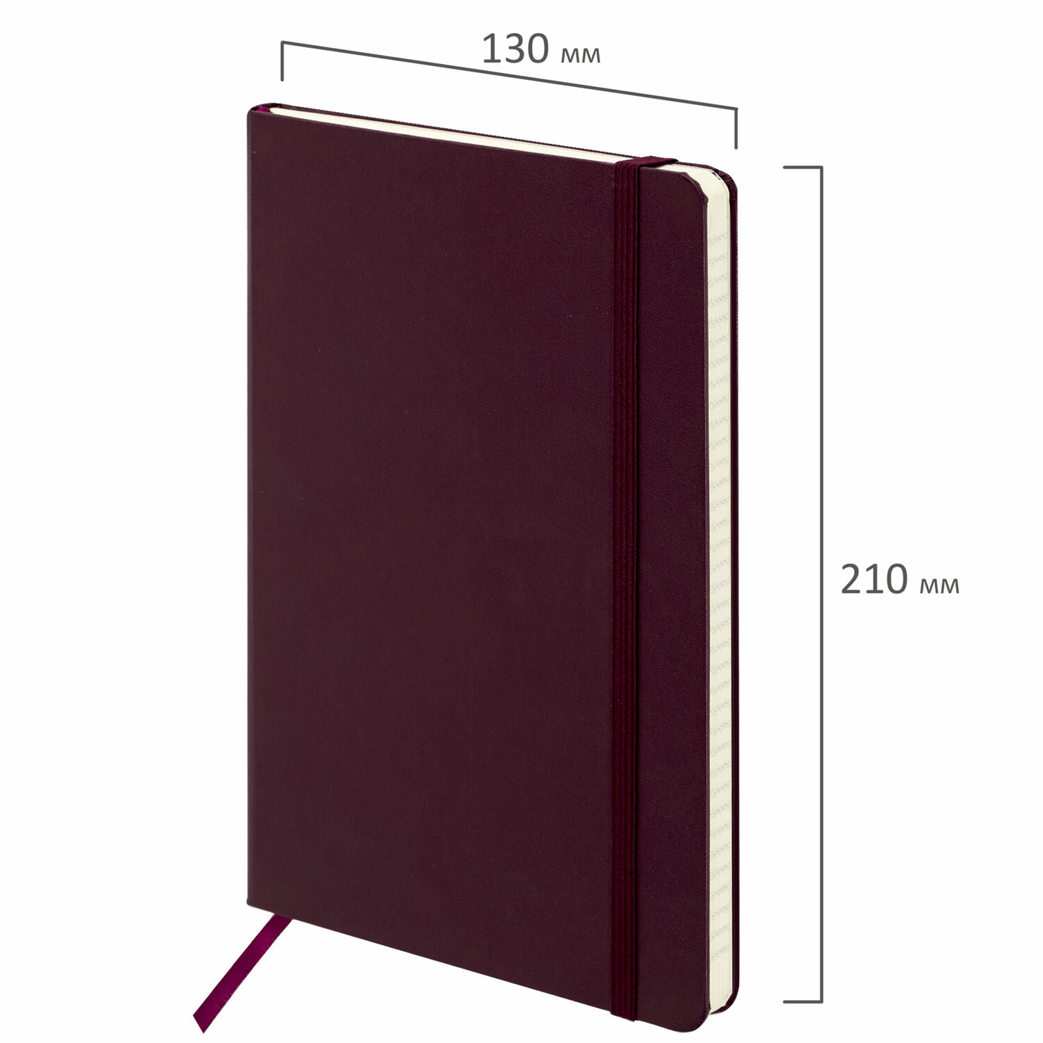 Твердая обложка стилизована под t;классическую кожуt;. Имеет закругленные уголки, подходит для горячего тиснения и имеет резинку-фиксатор, благодаря чему не раскроется в сумке или портфеле и листы не помнутся. На внутренней стороне задней обложки есть декоративный конверт для разных мелочей в виде визиток, напоминалок или других милых и полезных мелочей. 96 листов позволят зафиксировать большой объем информации. Линовка блока в клетку (5х5 мм) дает возможность аккуратно заполнить цифровые значения, а также нанести чертежные зарисовки. Внутренний блок выполнен из офсета цвета слоновой кости плотностью 80 г/м2 и крепится к обложке с помощью книжного переплета. Дополнением является закладка-ляссе, с помощью которой при необходимости можно быстро открыть нужную страницу. Формат блокнота А5 (130х210 мм) позволит владельцу поместить его в кейс или сумку малых габаритов. Блокнот А5 (130х210 мм), BRAUBERG ULTRA, балакрон, 80 г/м2, 96 л., клетка, бордовый, 113037
