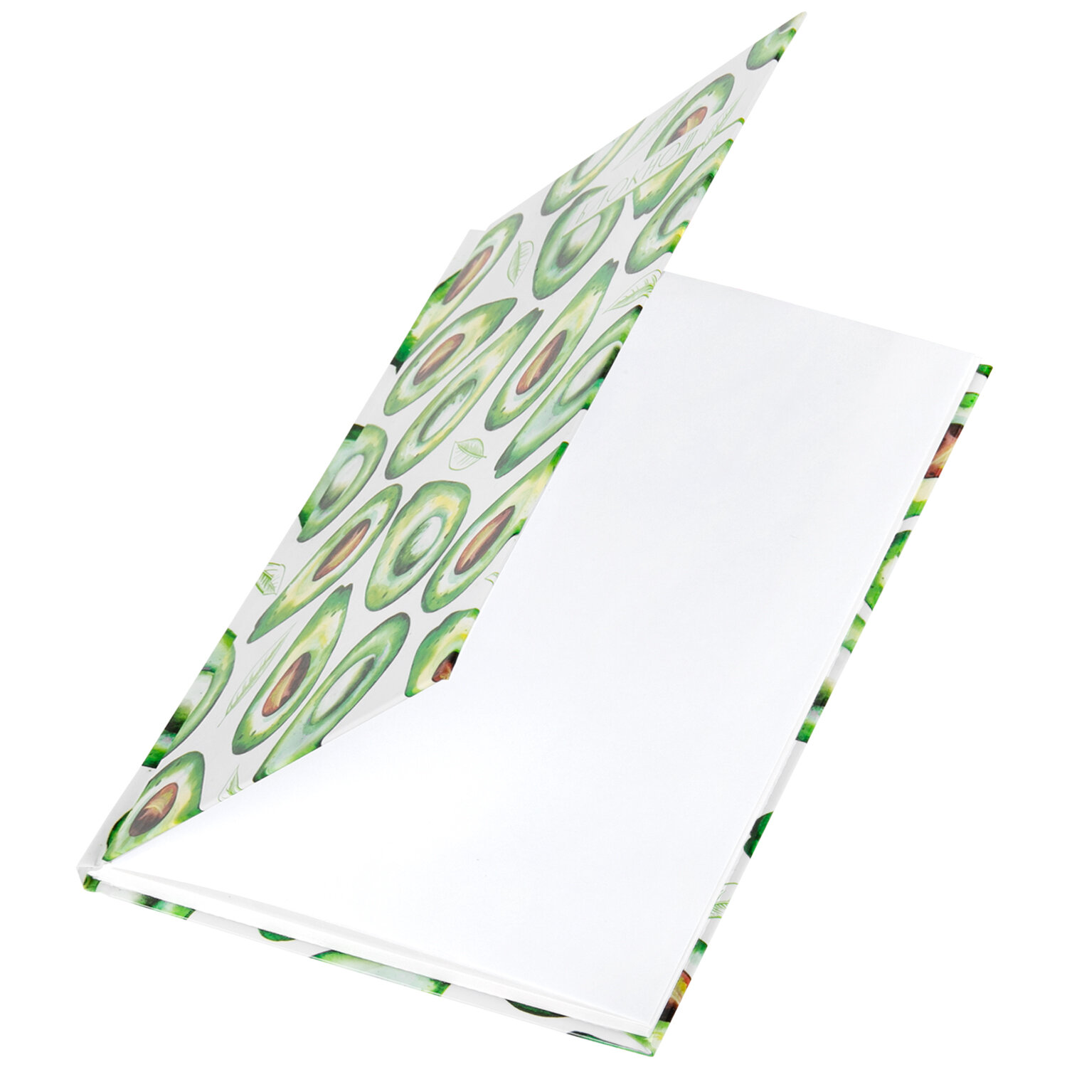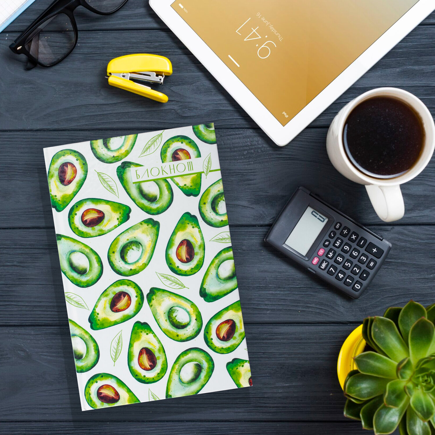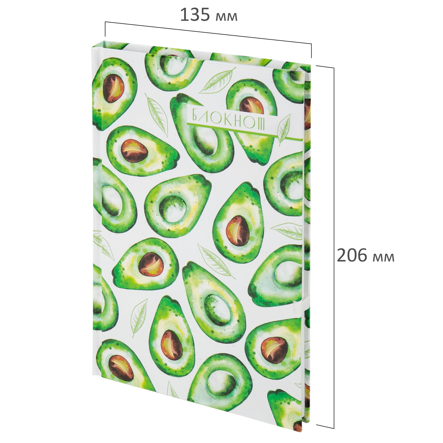 Жесткая обложка с глянцевой ламинацией долго сохраняет привлекательный внешний вид и позволяет делать записи на весу. 80 листов позволят зафиксировать большой объем информации. Линовка блока в клетку дает возможность аккуратно заполнить цифровые значения, а также нанести чертежные зарисовки. Внутренний блок выполнен из офсета белого цвета плотностью 60 г/м2 и крепится к обложке с помощью книжного переплета. Формат блокнота А5 (134х206 мм) позволит владельцу поместить его в кейс или сумку малых габаритов. Обложка блокнота с оригинальным рисунком - стильное решение среди записных аксессуаров. Блокнот А5 134х206 мм, 80 л., твердый, клетка, STAFF, "Авокадо", 111598