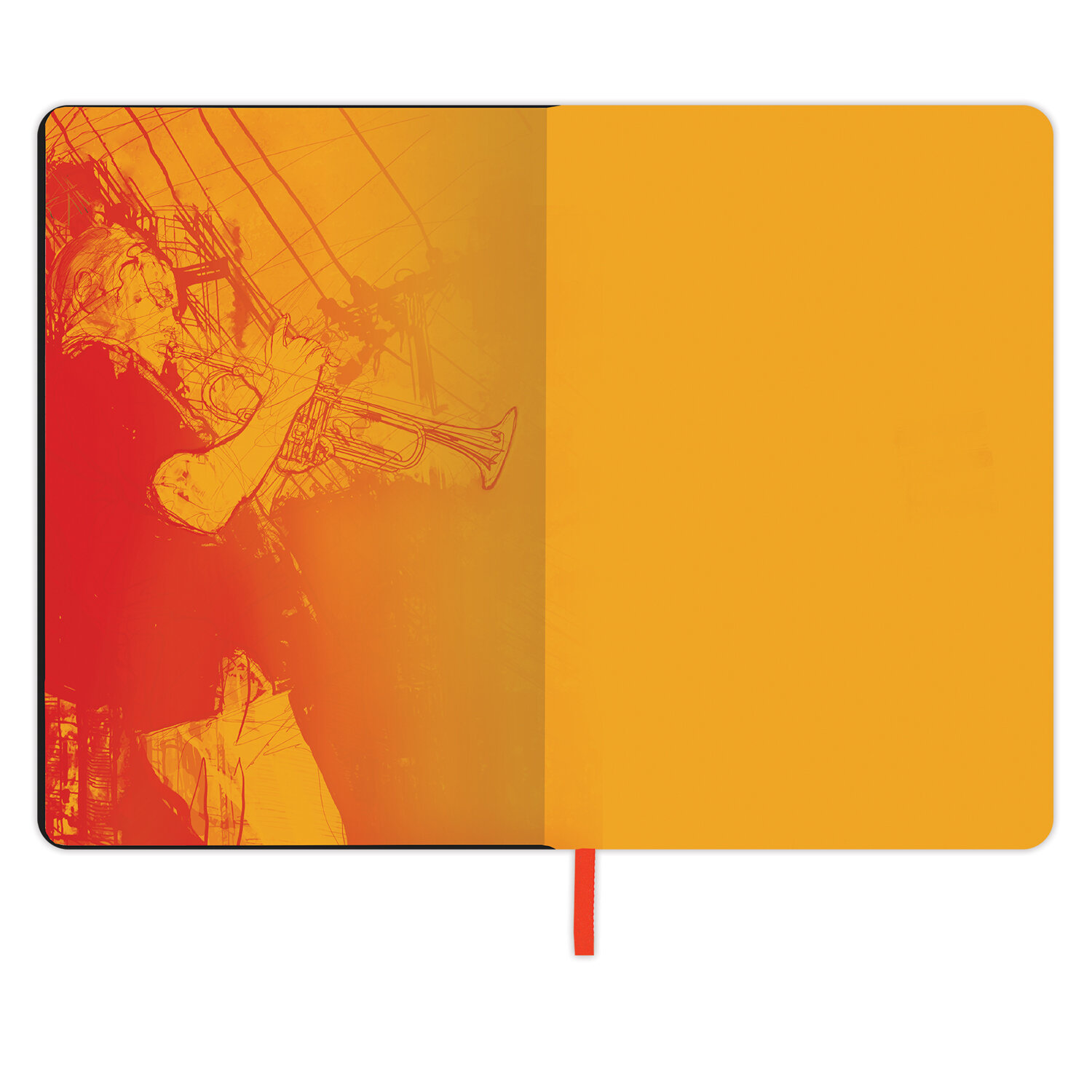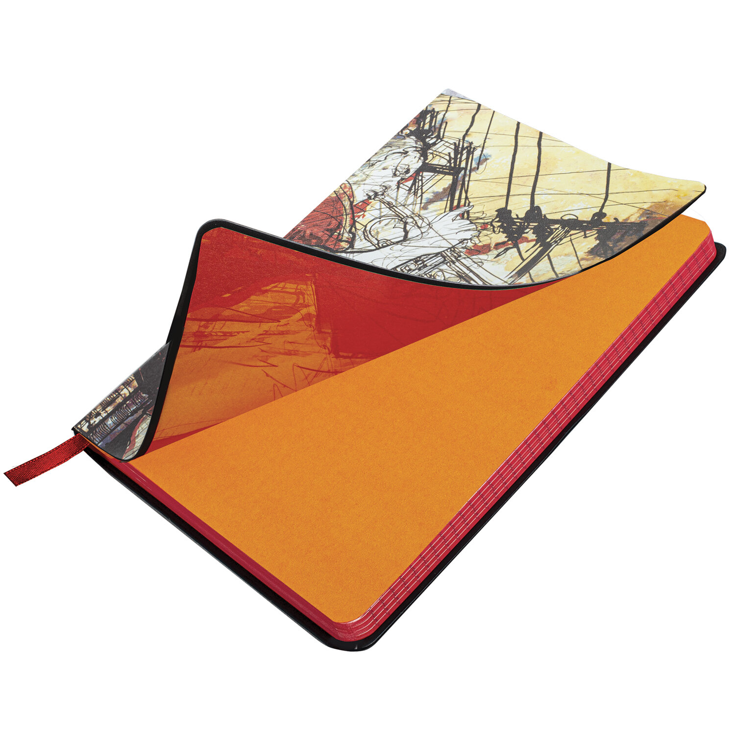 Внутренний блок включает 80 листов тонированной бумаги цвета t;слоновая костьt; плотностью 70 г/м2. Благодаря стандартному формату А5 блокнот удобно использовать как в офисе, так и на выездных деловых встречах. Интегральная (мягкая) обложка с полноцветной печатью делает блокнот неповторимым и запоминающимся. Срез блокнота прокрашен, что придает ему особый шарм. Дополнением является закладка-ляссе, с помощью которой можно быстро открыть блокнот на нужной странице.