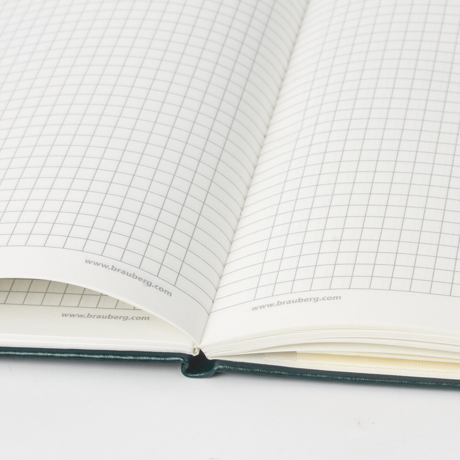 - Блокнот А5 (148x218 мм), BRAUBERG "Metropolis", балакрон, 80 л., резинка, клетка, зеленый, 111583
