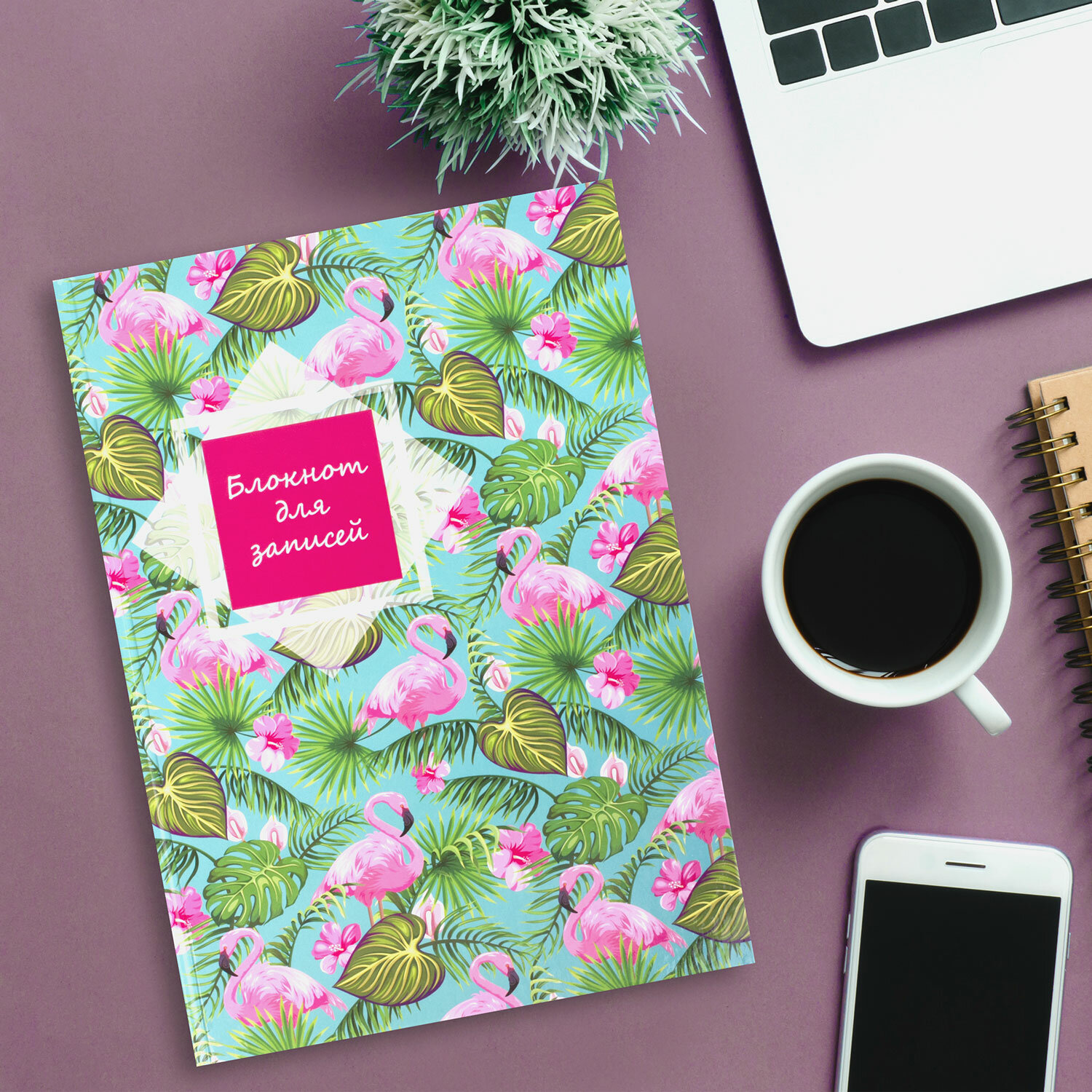 - Блокнот БОЛЬШОЙ ФОРМАТ (215х295 мм) А4, 128 л., твердый, клетка, STAFF, "Фламинго", 111594