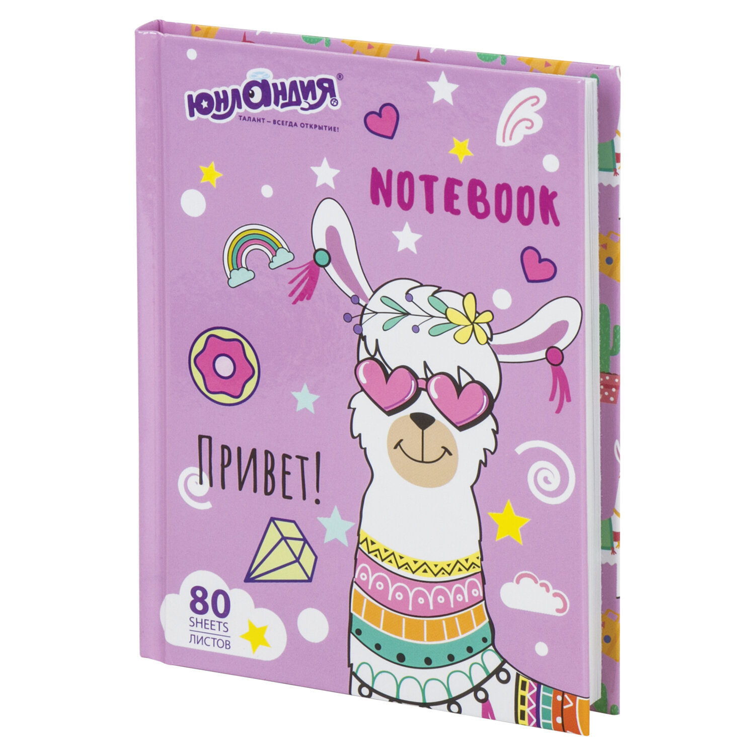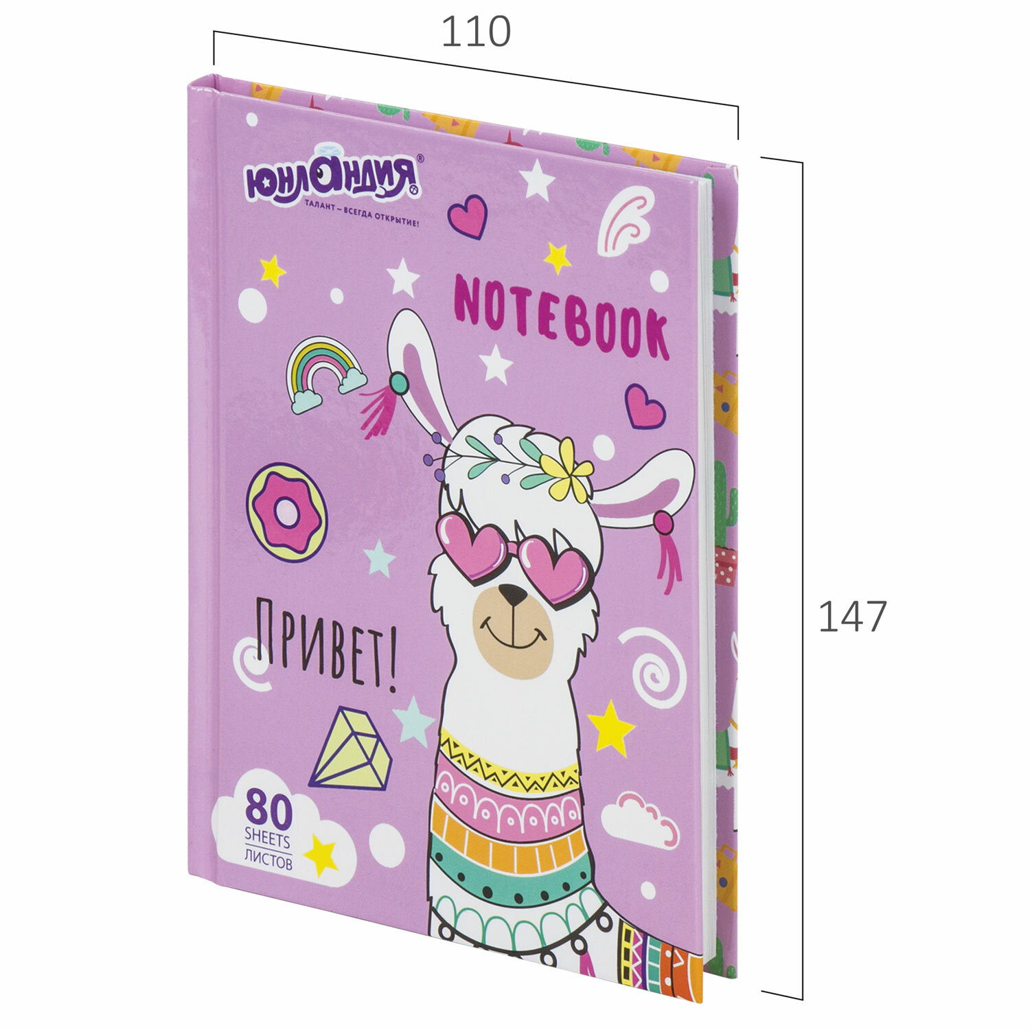Жесткая обложка с глянцевой ламинацией долго сохраняет привлекательный внешний вид и позволяет делать записи на весу. 80 листов позволят зафиксировать большой объем информации. Линовка блока в клетку дает возможность аккуратно заполнить цифровые значения, а также нанести чертежные зарисовки. Внутренний блок выполнен из офсета белого цвета плотностью 60 г/м2 и крепится к обложке с помощью книжного переплета. Формат блокнота А6 (110х147 мм) позволит владельцу поместить его в кейс или сумку малых габаритов. Блокнот МАЛЫЙ ФОРМАТ 110х147 мм, А6, 80 л., твердый, клетка, ЮНЛАНДИЯ, "Лама", 111619