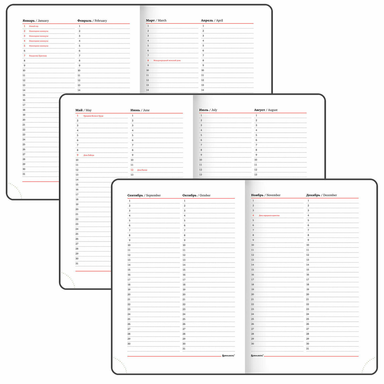 Внутренний блок включает 136 листов белой бумаги плотностью 70 г/м2. Благодаря стандартному формату А5 ежедневник удобно использовать как в офисе, так и на выездных деловых встречах. Интегральная (мягкая) обложка с полноцветной печатью делает ежедневник неповторимым и запоминающимся.