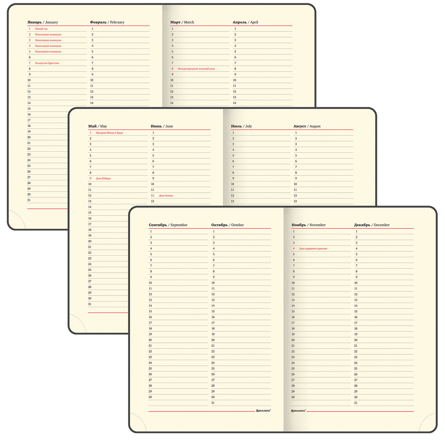 Срез ежедневника окрашен в цвет обложки, что придает ему особый шарм. Дополнением является закладка-ляссе, с помощью которой можно быстро открыть ежедневник на нужной странице. Помимо прочего ежедневник снабжен справочным материалом. В конце ежедневника есть 3 страницы для записей и заметок.