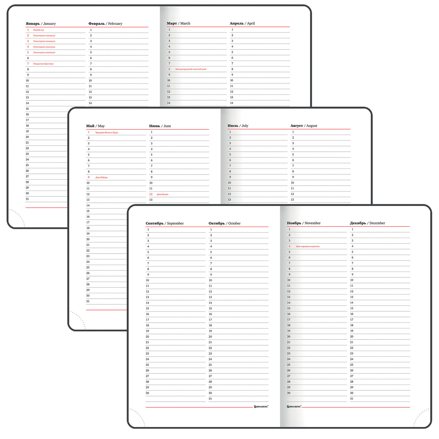 Ежедневники с покрытием "под кожу и ткань" BRAUBERG