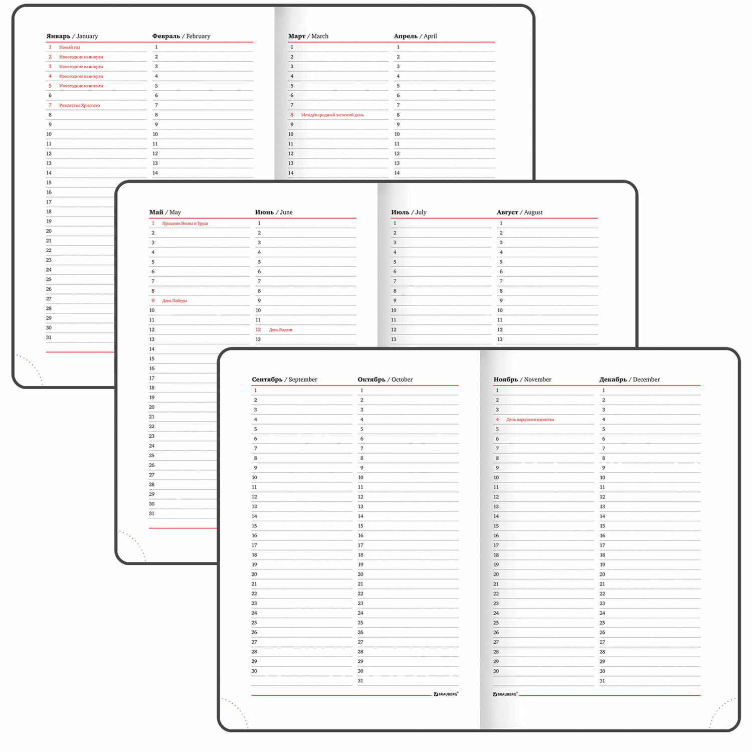 Внутренний блок включает 136 листов белой бумаги плотностью 70 г/м2. Благодаря стандартному формату А5 ежедневник удобно использовать как в офисе, так и на выездных деловых встречах. Твердая (книжная) обложка с полноцветной печатью и тиснением серебряной фольгой делает ежедневник неповторимым и запоминающимся.