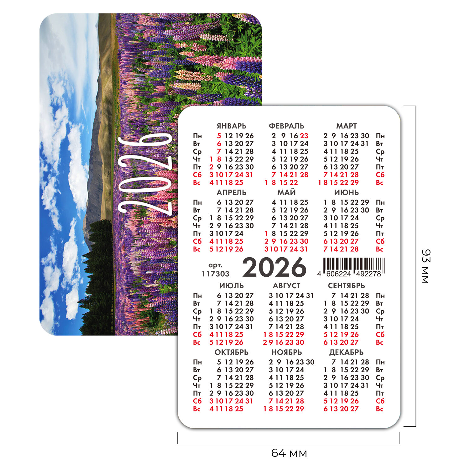 - Календарь карманный на 2026 г, BRAUBERG, 64х93 мм, АССОРТИ №1, 20 видов, 117303