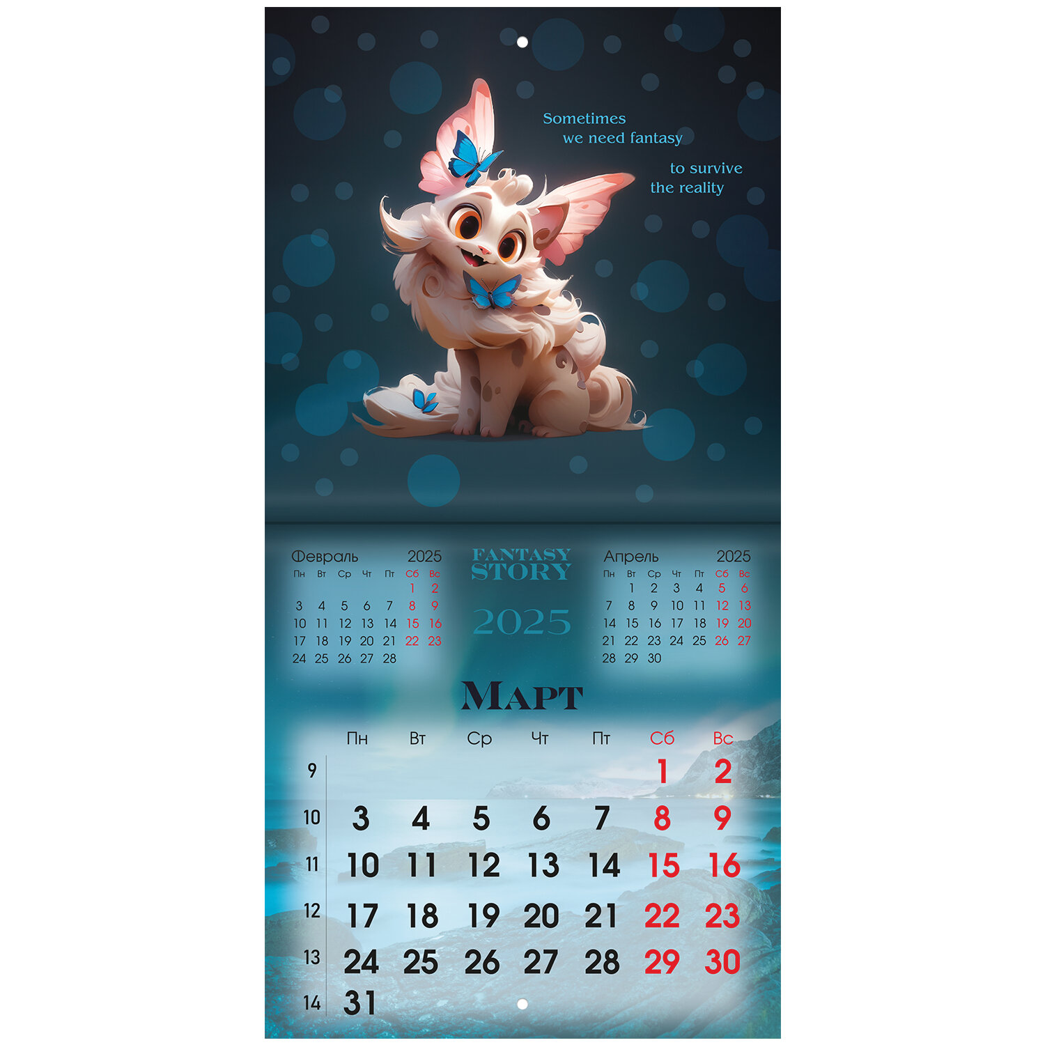 - Календарь настенный перекидной на 2025 г., BRAUBERG, 12 листов, 22,5х22,5 см, МИНИ, "Fantasy Story", 116182