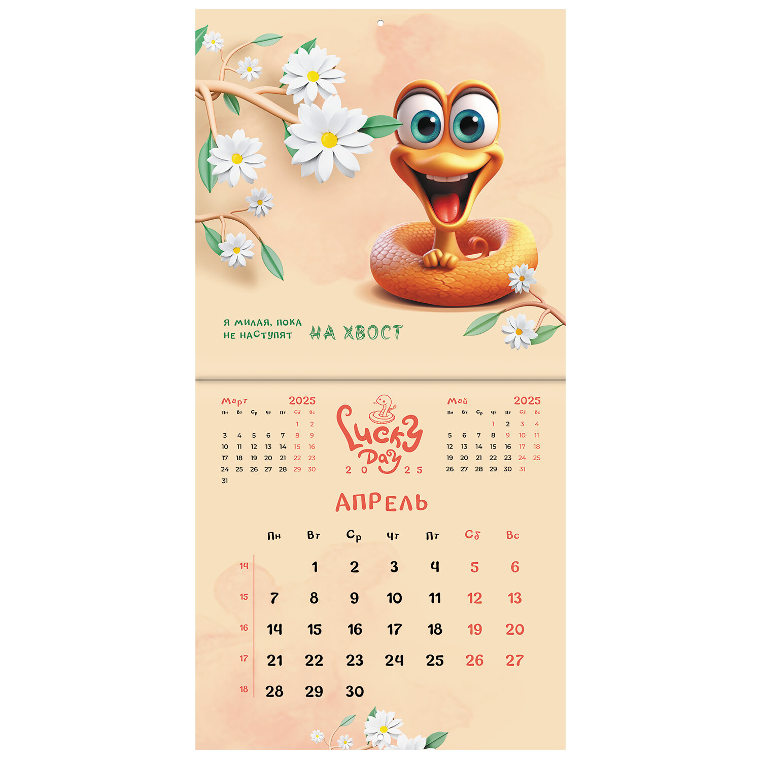 - Календарь настенный перекидной на 2025 г., BRAUBERG, 12 листов, 29х29 см, "Весёлые змейки", 116168