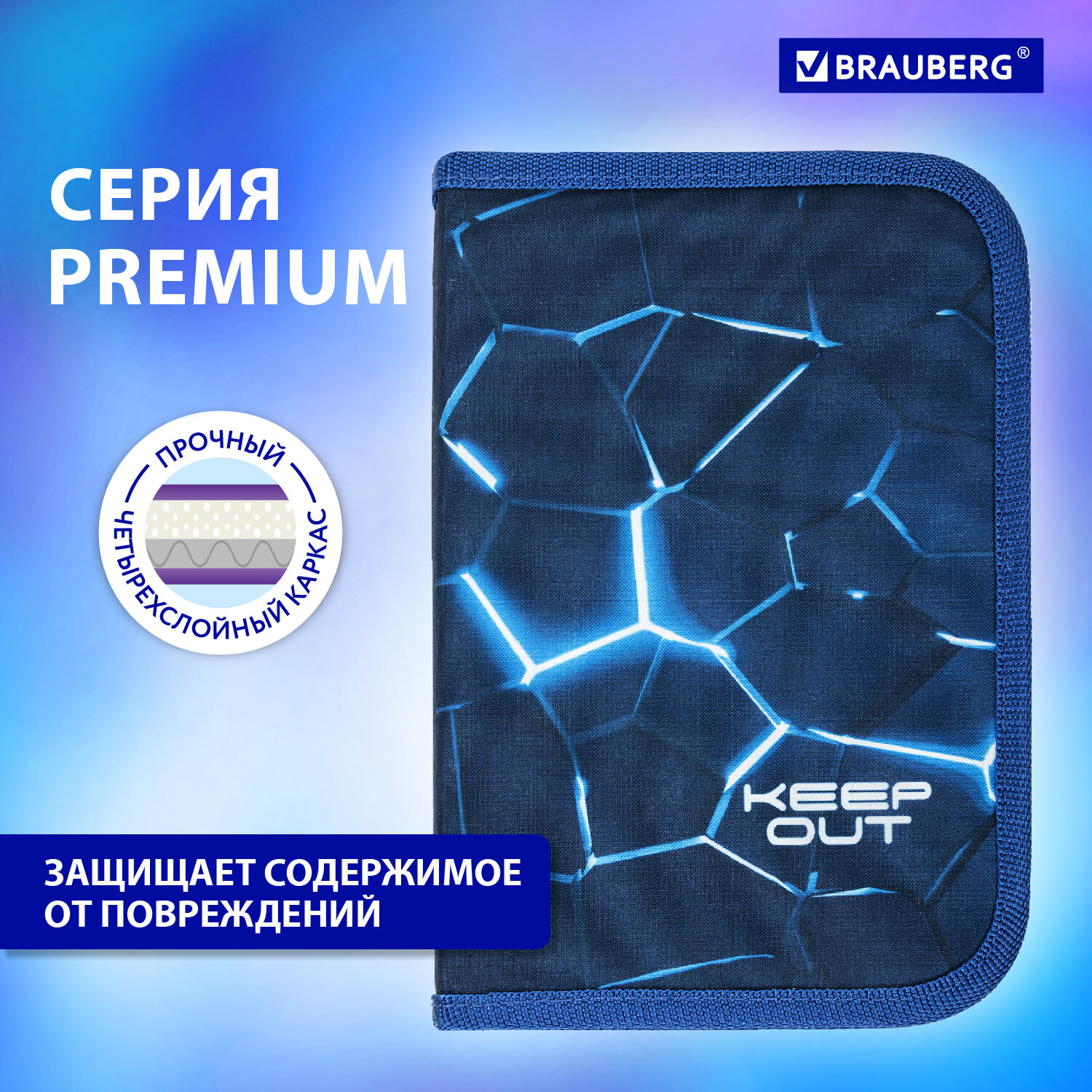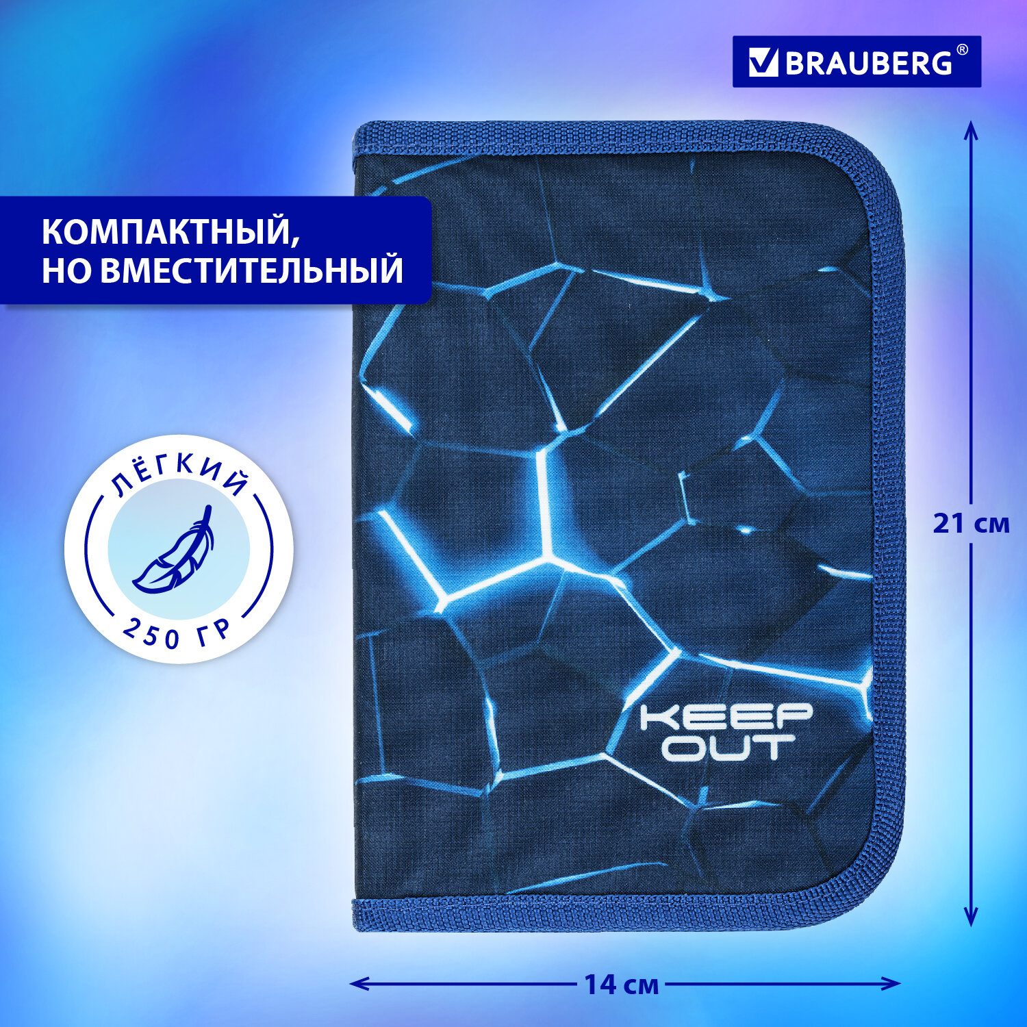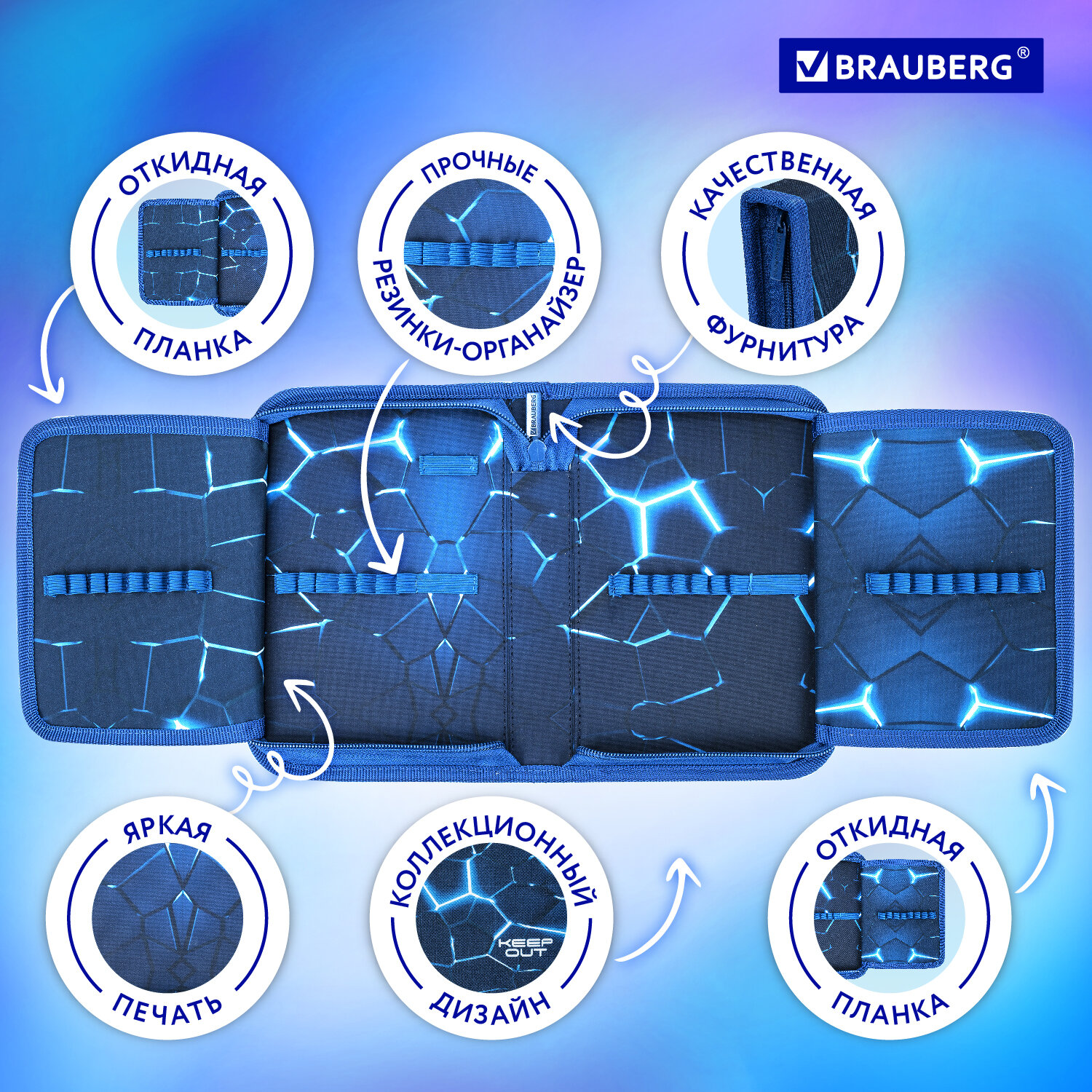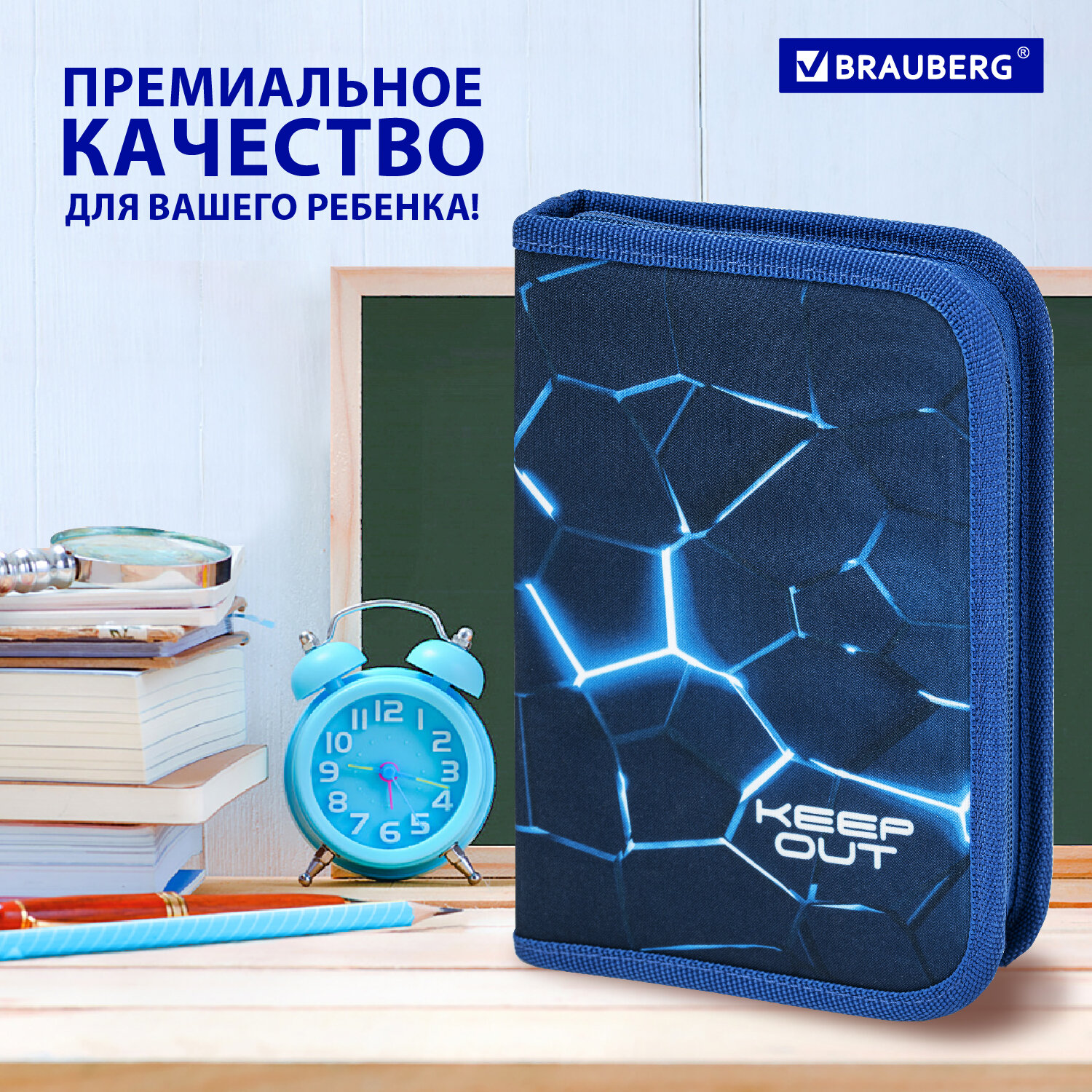 Упакован в ПЭТ-пакет с европодвесом, который сохранит качество и товарный вид при хранении и транспортировке. Пенал BRAUBERG, 1 отделение, 2 откидные планки, полиэстер, 21х14 см, Digital lava, 272320