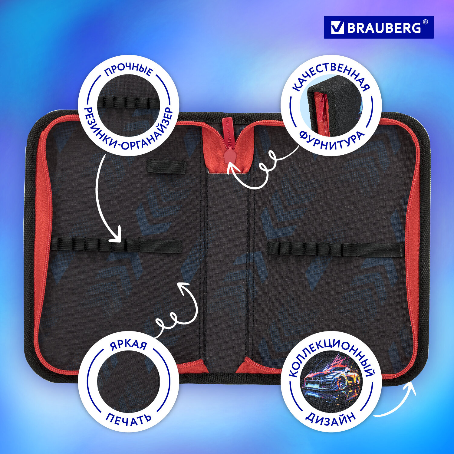 Пенал BRAUBERG, 1 отделение, полиэстер, 21х14 см, "Neon drift", 272329