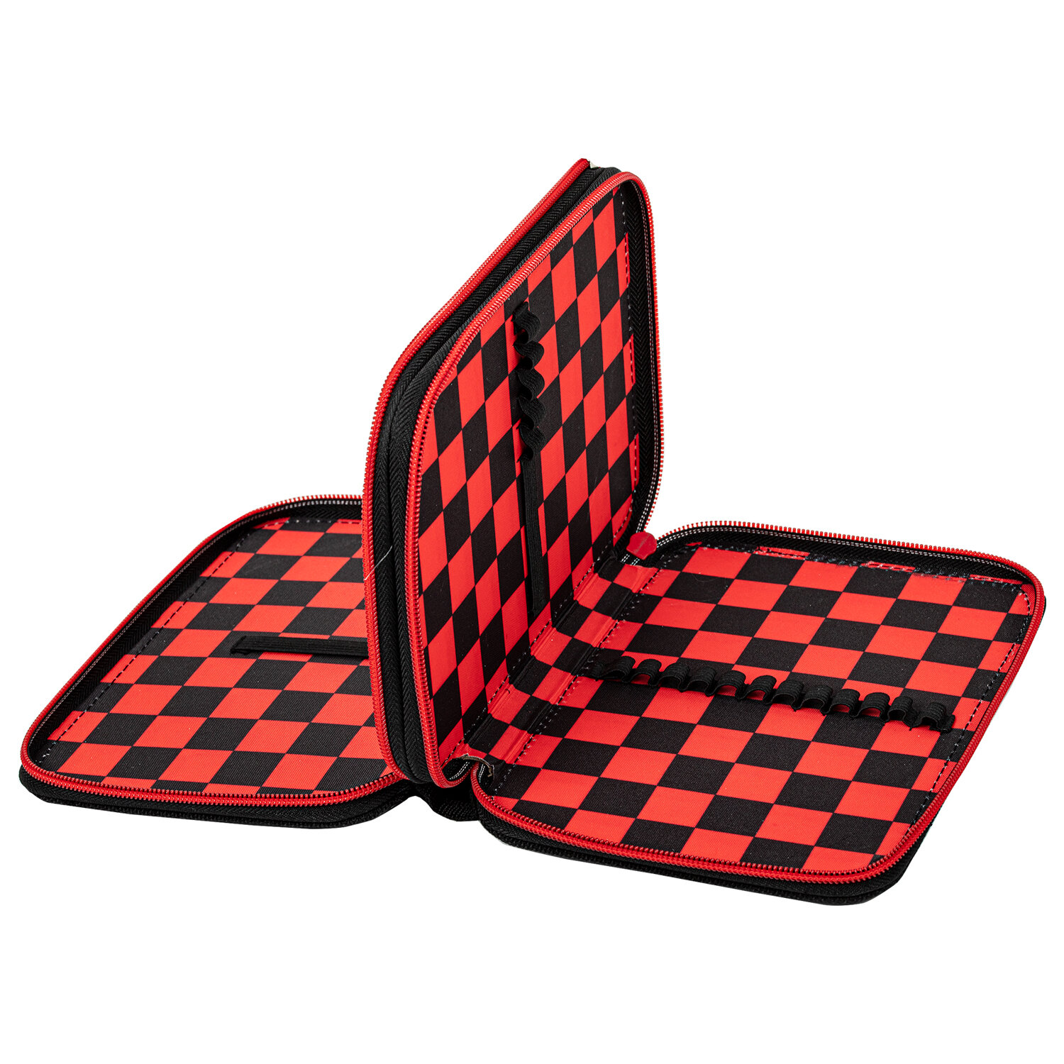 Пенал оснащен 2 основными отделениями. Вмещает до 25 предметов.