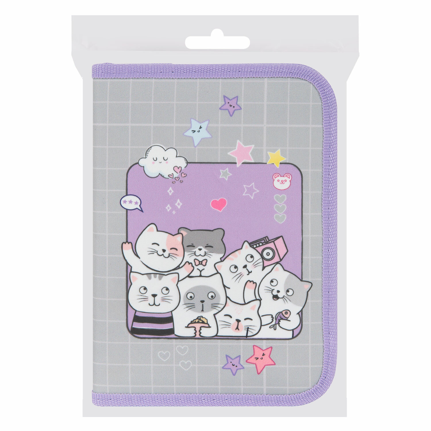 Пенал упакован в ПЭТ-пакет с европодвесом, который сохранит его качество и товарный вид при хранении и транспортировке. Пенал ПИФАГОР, 1 отделение, 2 откидные планки, полиэстер, 20х14 см, "Cats selfie", 273477