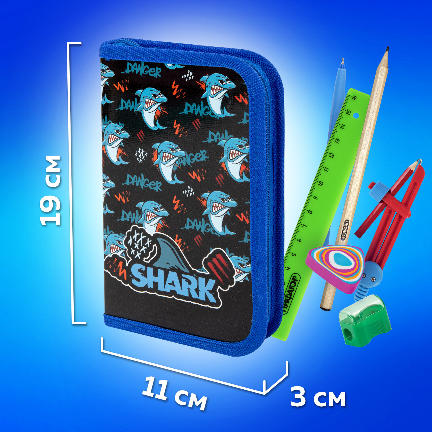 Пенал ПИФАГОР, 1 отделение, ламинированный картон, 19х11 см, "Angry shark", 272243