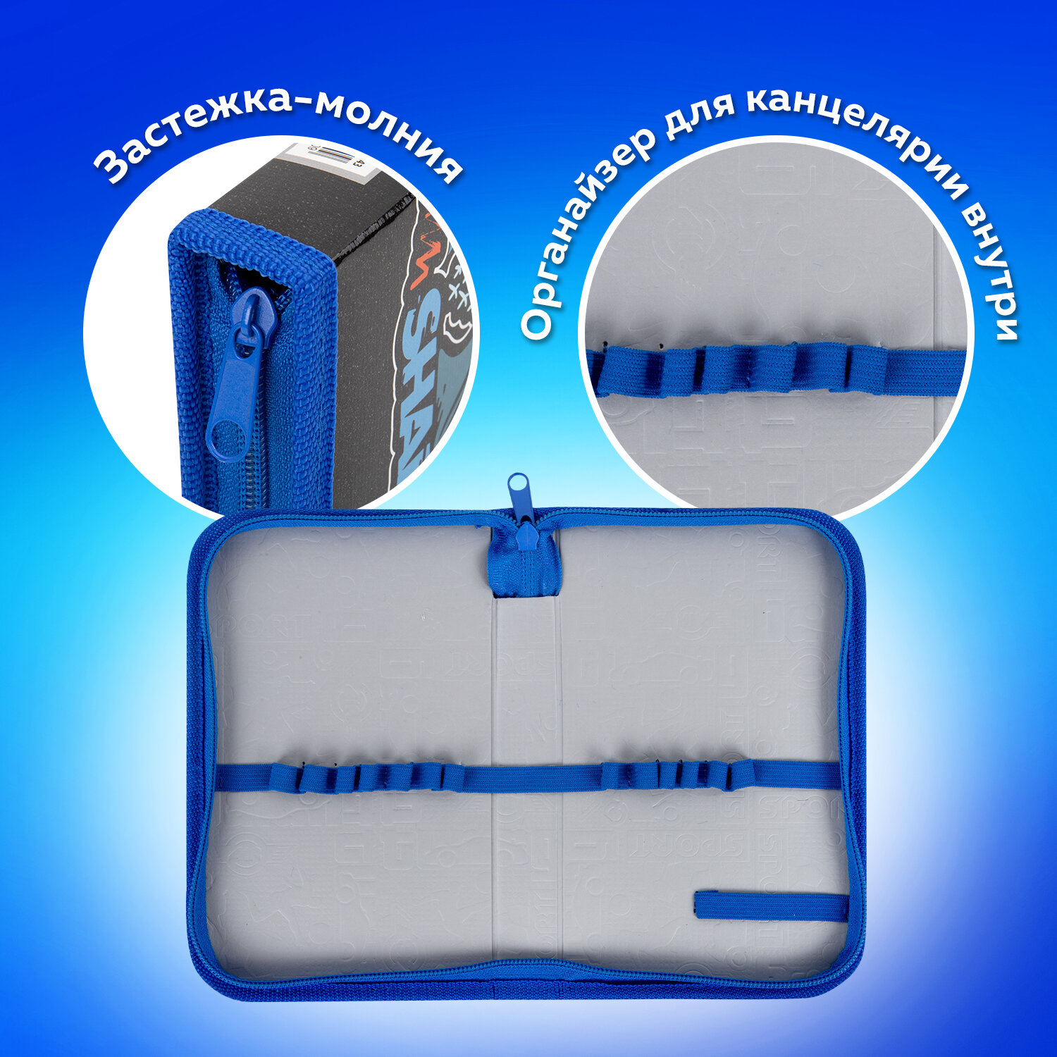 Пенал имеет стандартный размер 19х11 см, что позволяет легко размещать его в ранце, рюкзаке или сумке. Хорошая наполняемость пенала дает возможность держать все необходимые для уроков канцтовары в порядке, в одном месте. Пенал ПИФАГОР, 1 отделение, ламинированный картон, 19х11 см, "Angry shark", 272243